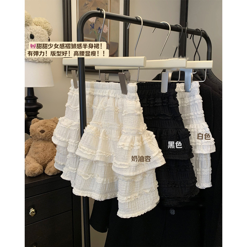 小个子夏季半身裙女新款高腰显瘦短裙百褶裙防走光蓬蓬蛋糕裙