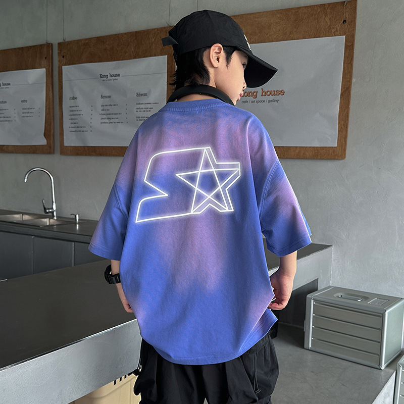 男童套装夏季新款儿童夏装扎染短袖衣服潮中大童男孩夏款童装