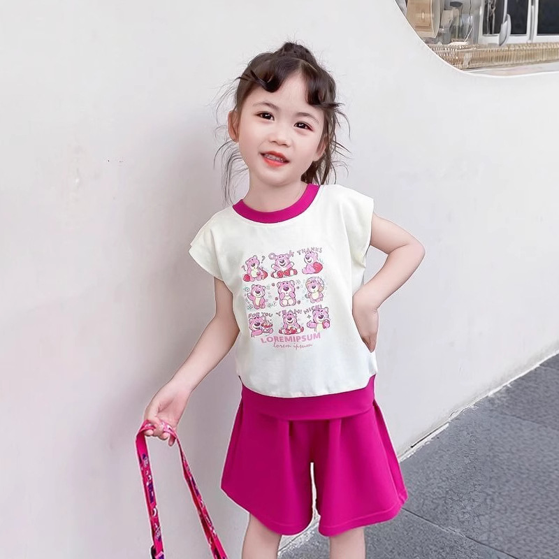 童装夏季女童时尚套装中小童短袖后背蝴蝶结上衣短裤儿童运动服女
