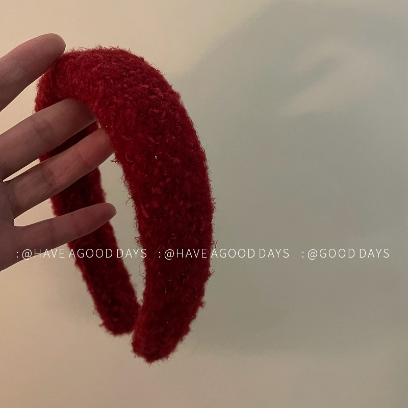 新年红色毛绒发箍小众设计感气质甜美高颅顶个性可爱时尚头箍发饰