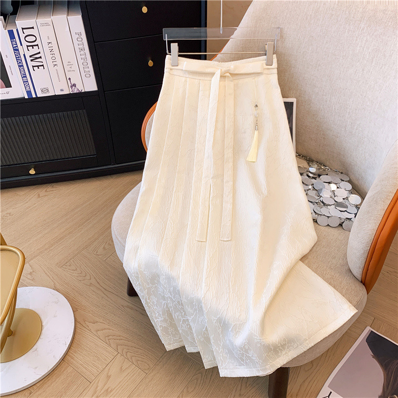 黑色提花半身裙女高级感吊坠国风百褶长裙春季新中式改良马面裙潮