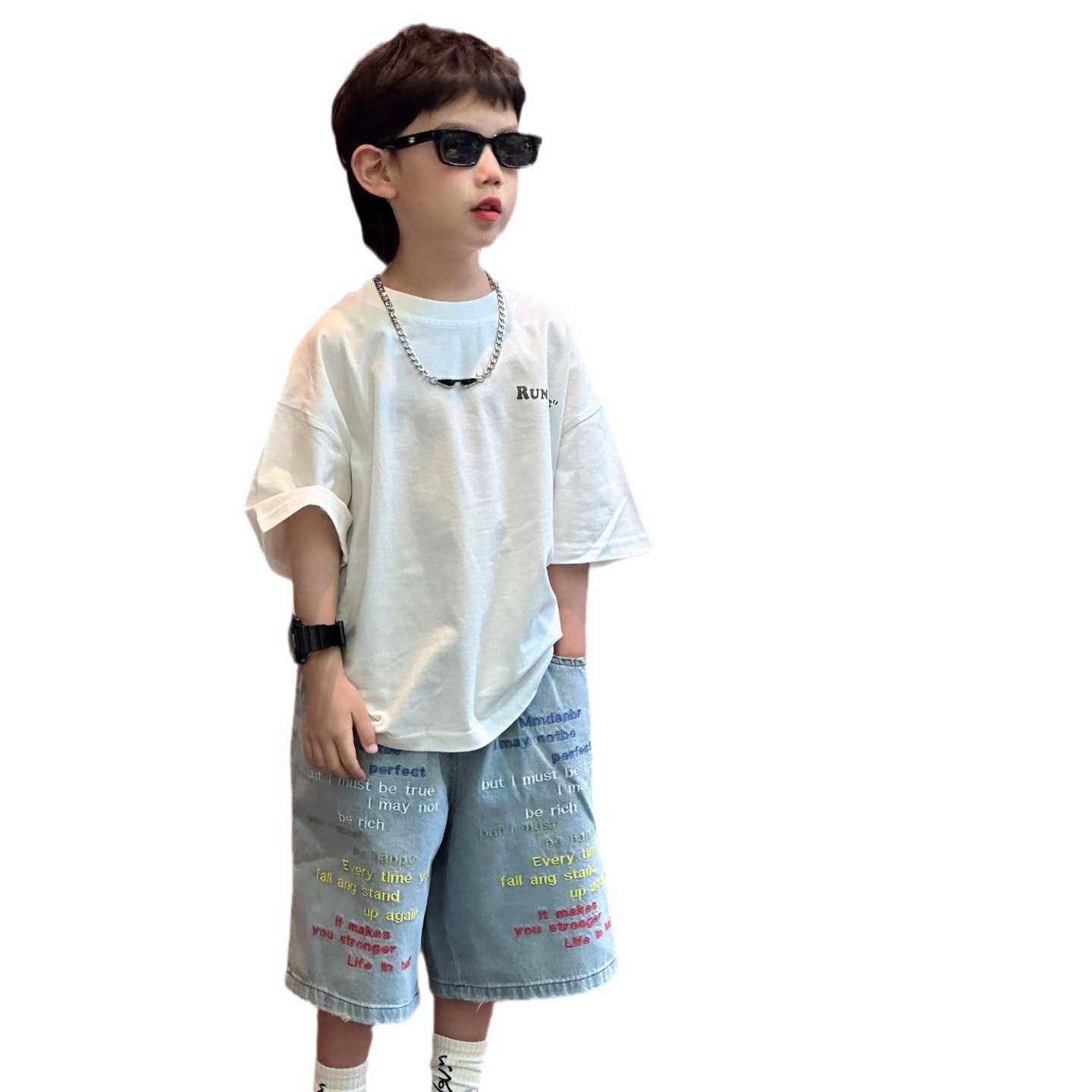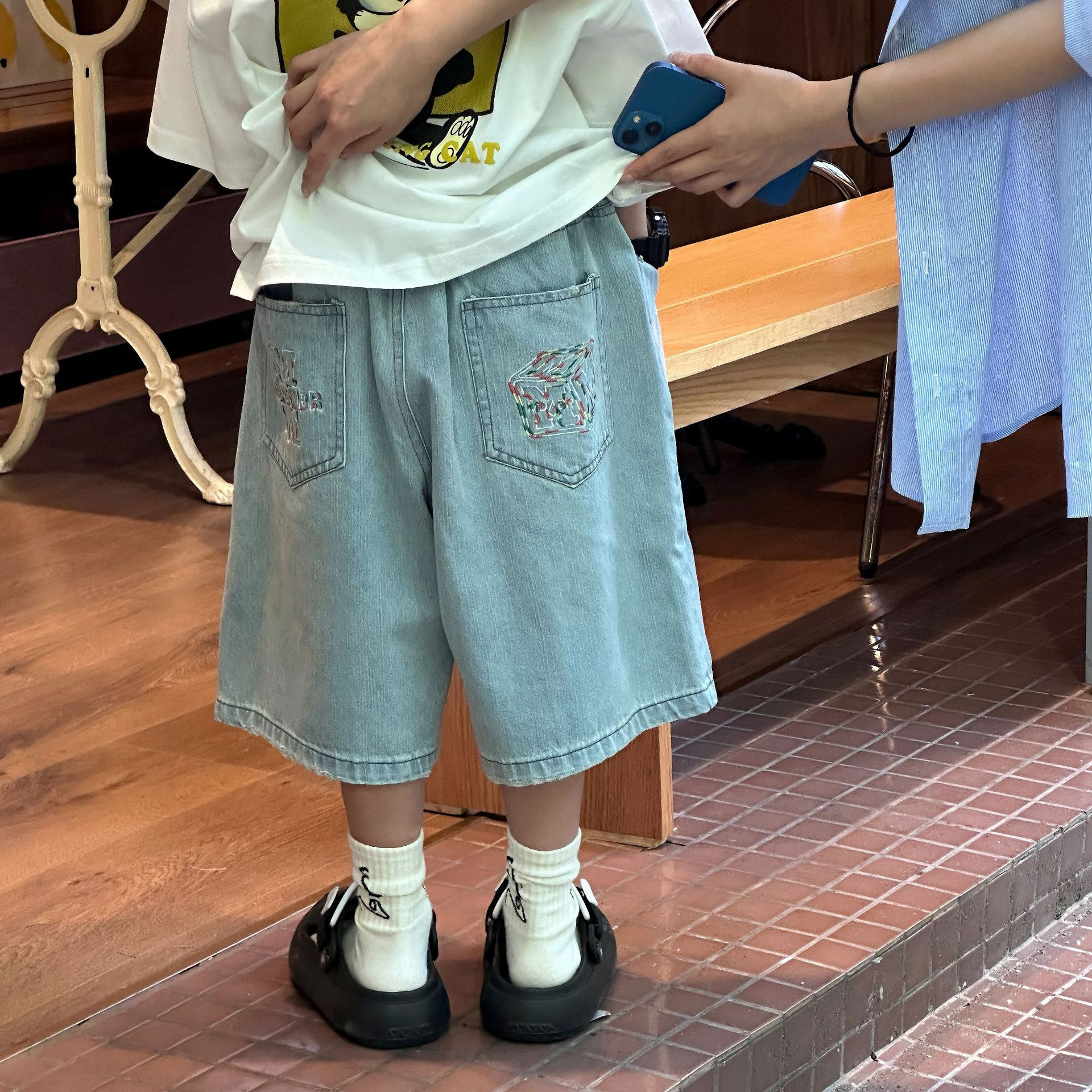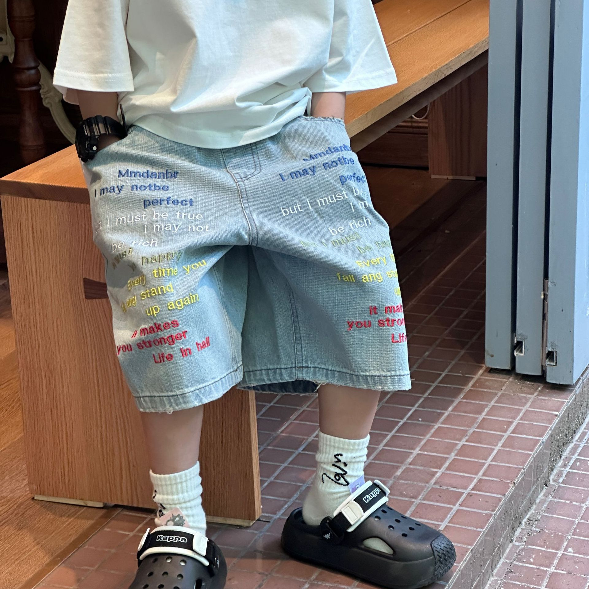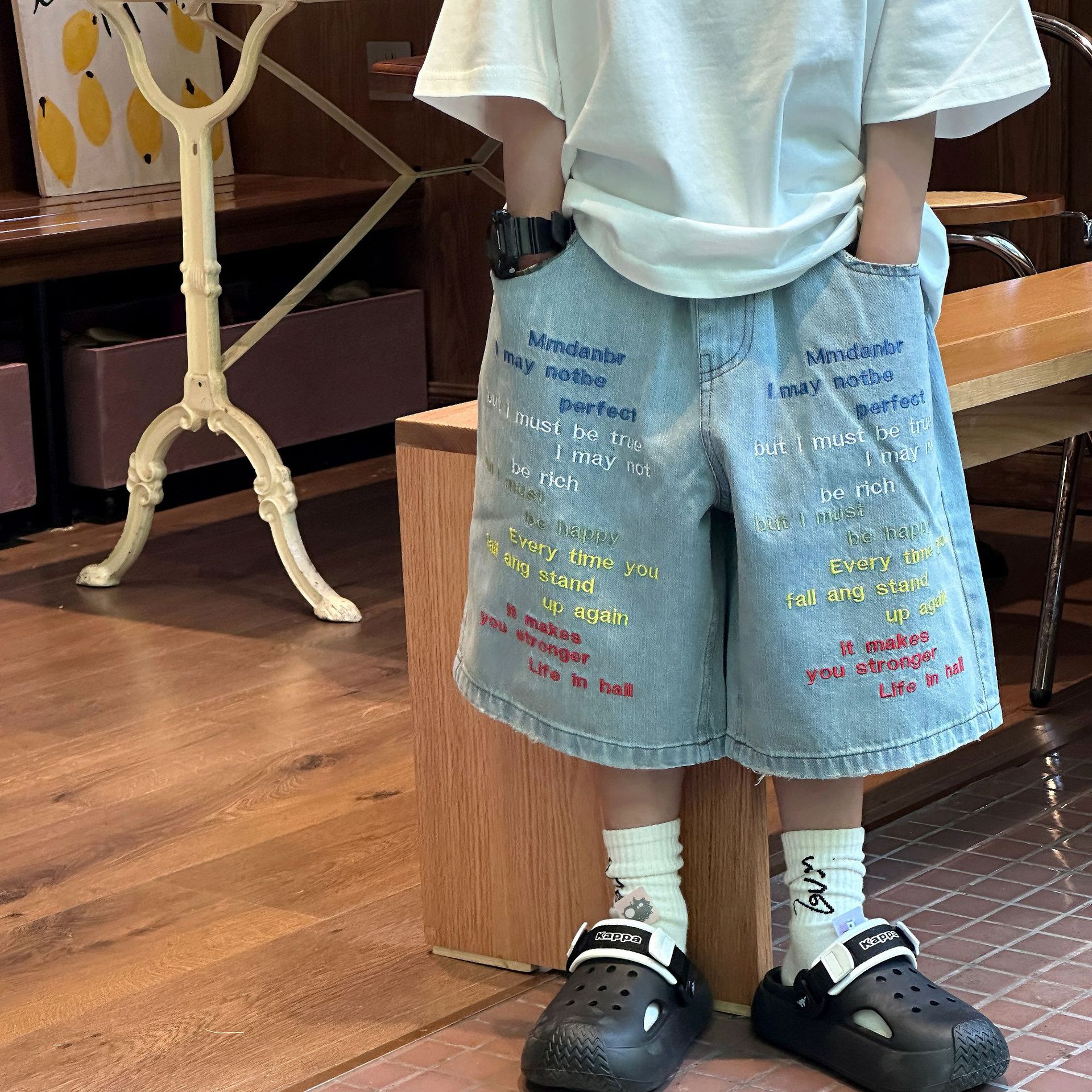 泰如夏季新款韩版男童时尚百搭洋气字母休闲牛仔裤儿童短裤潮