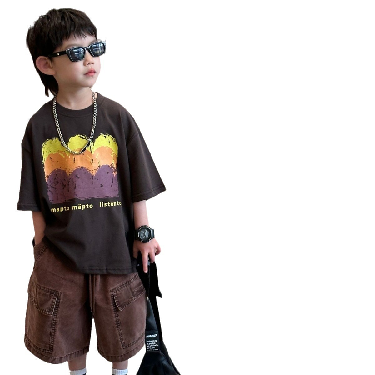 泰如夏季新款韩版男童时尚洋气工装炒色洋气牛仔裤儿童短裤潮
