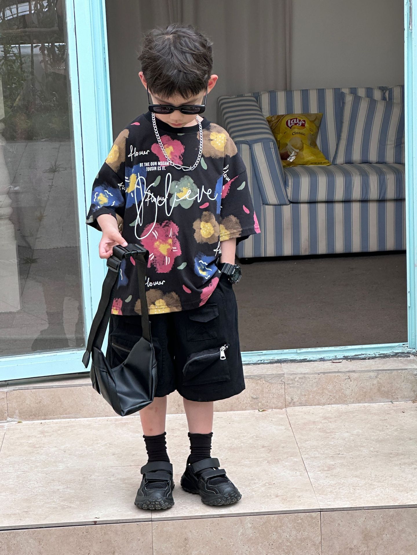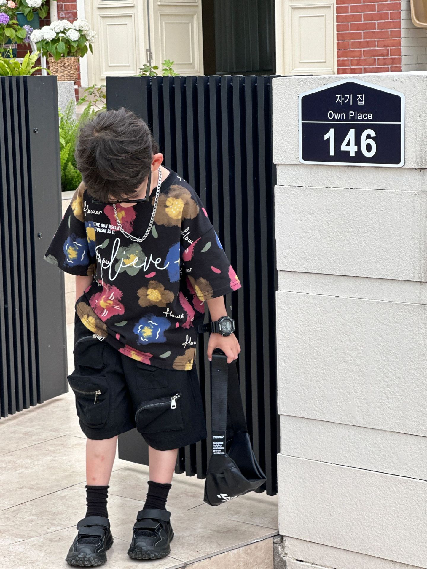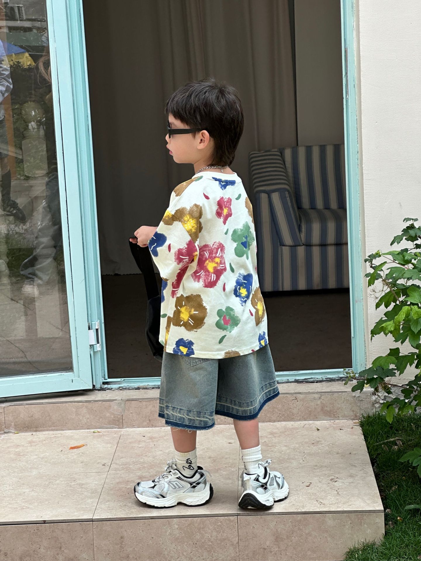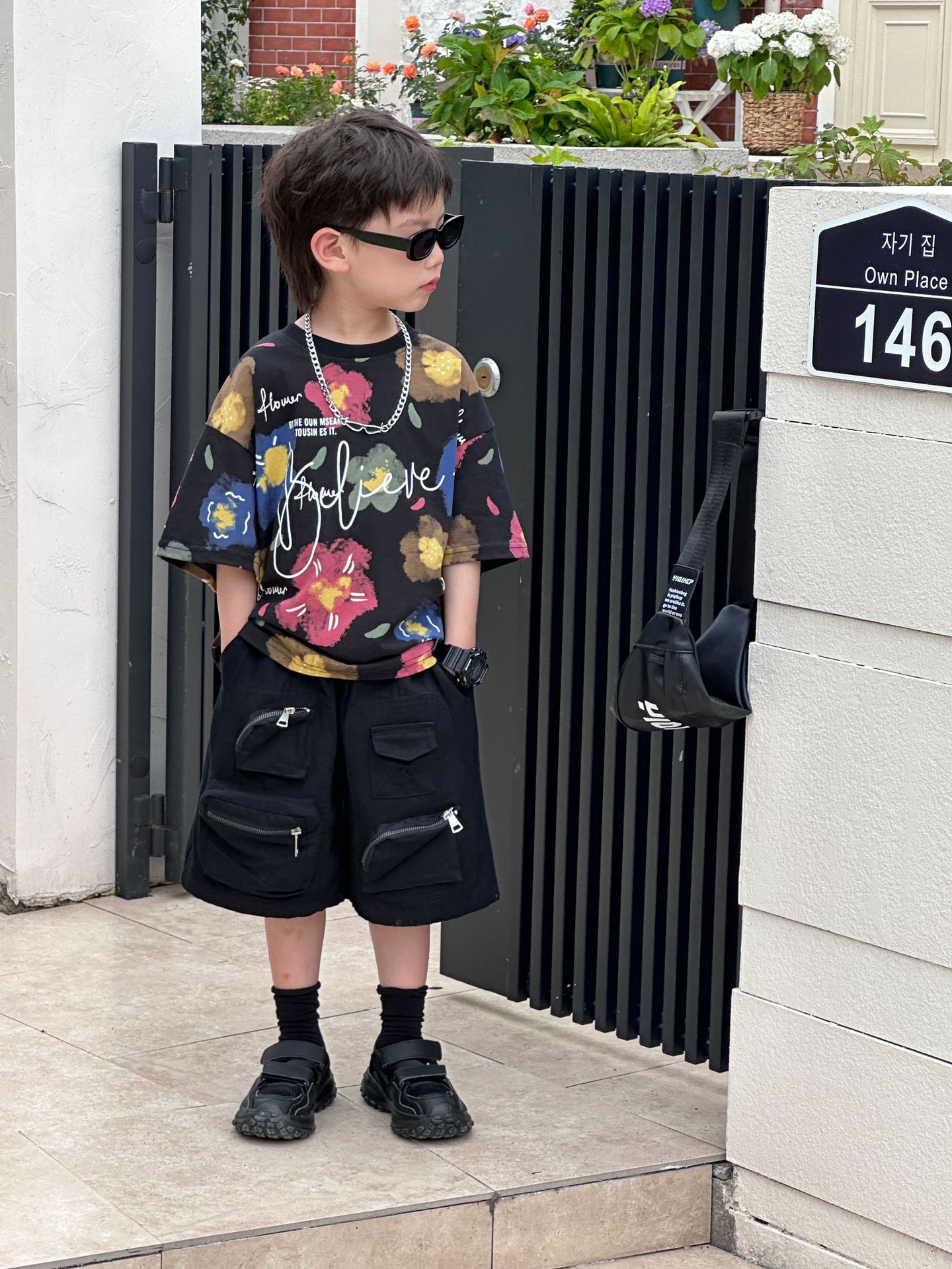 泰如夏季新款韩版男童百搭设计感花朵潮酷T恤儿童短袖上衣