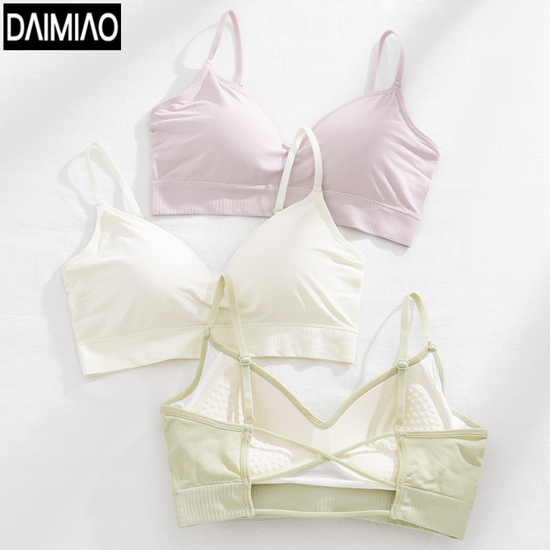 春新款交叉美背文胸内衣女士小胸不空杯无钢圈带胸垫内搭打底裹胸