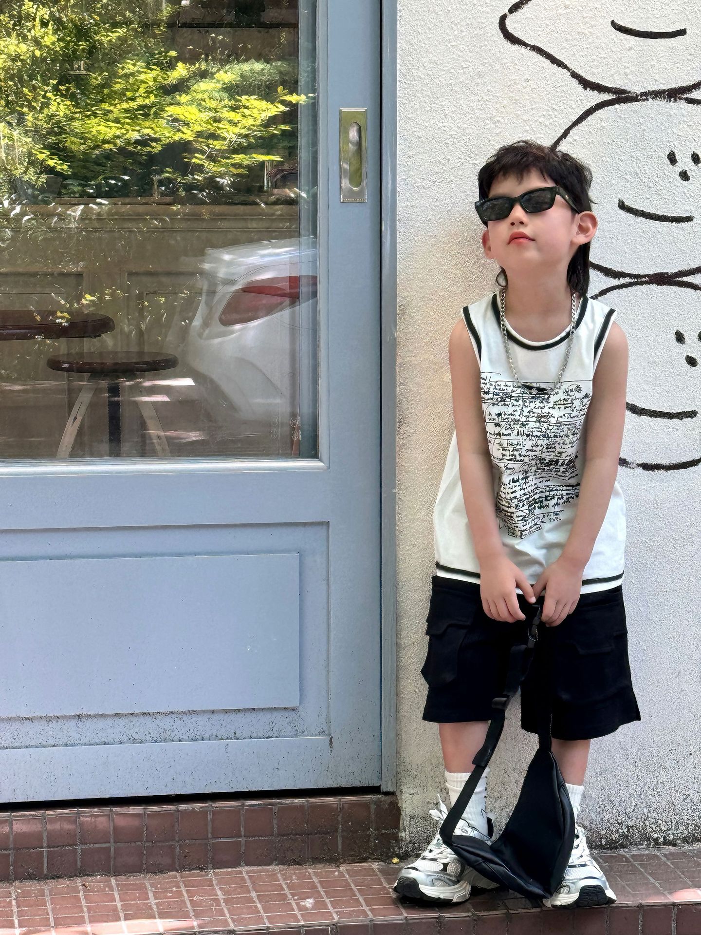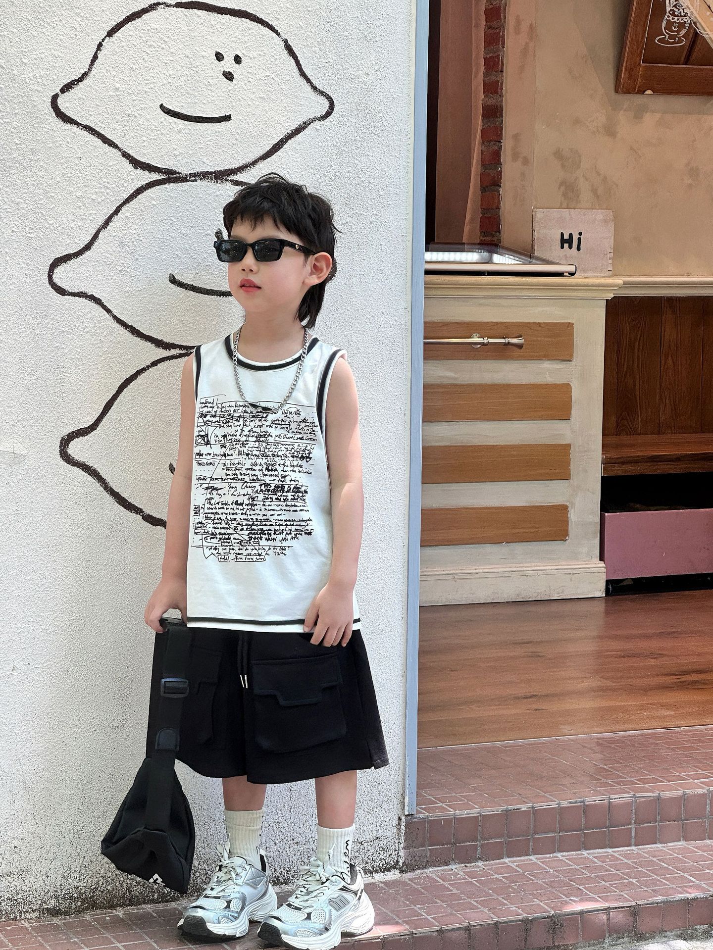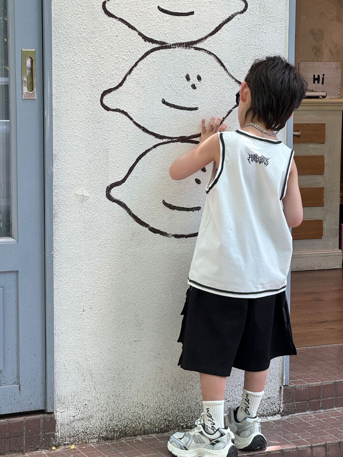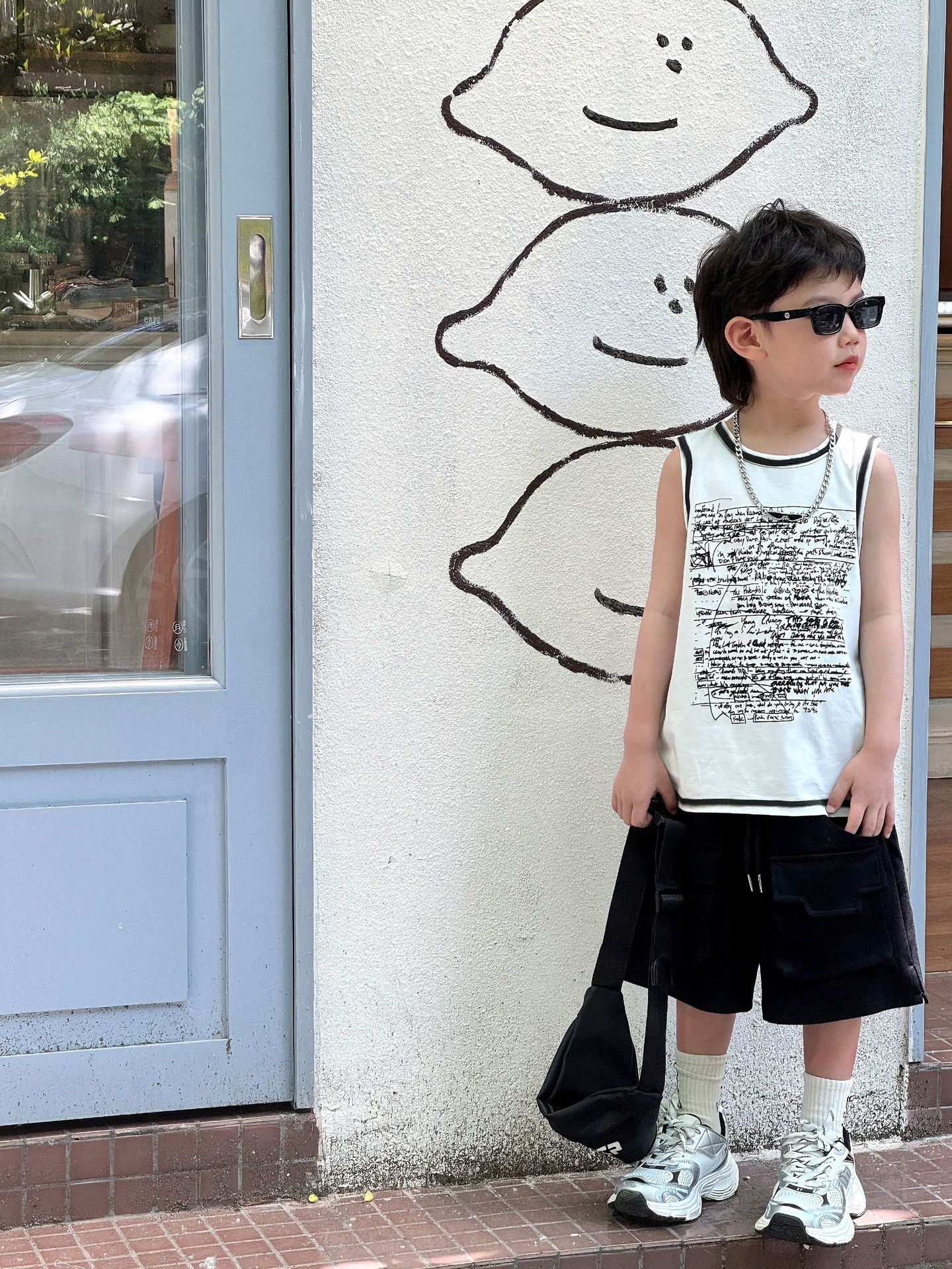 泰如夏季新款韩版男童百搭洋气字母美式设计感背心儿童T恤潮