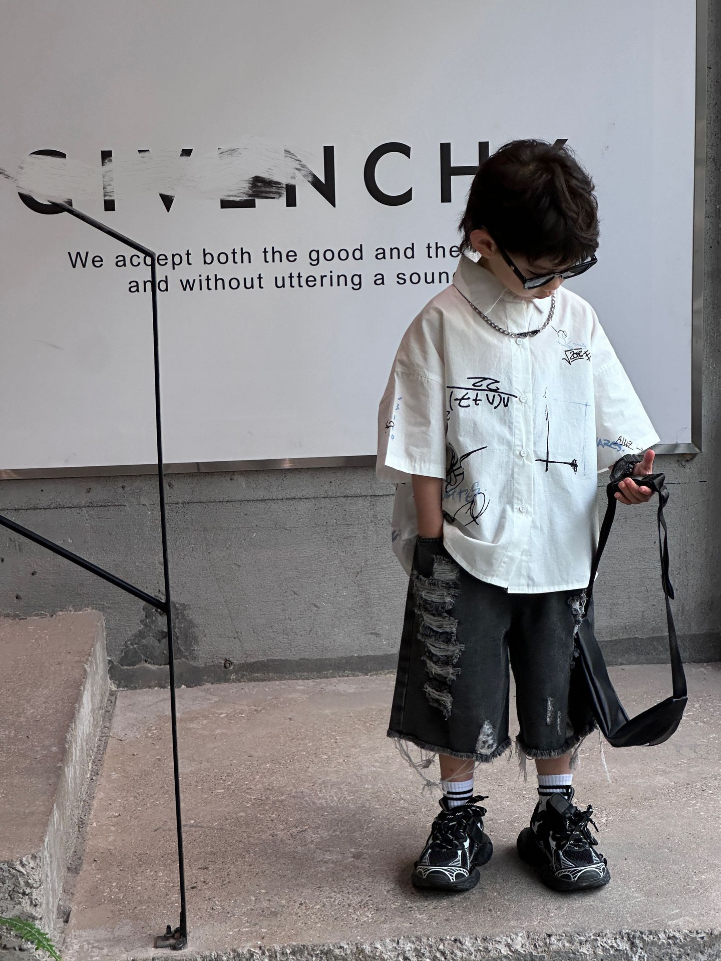 泰如夏季新款韩版男童时尚休闲百搭字母设计感衬衫儿童上衣潮