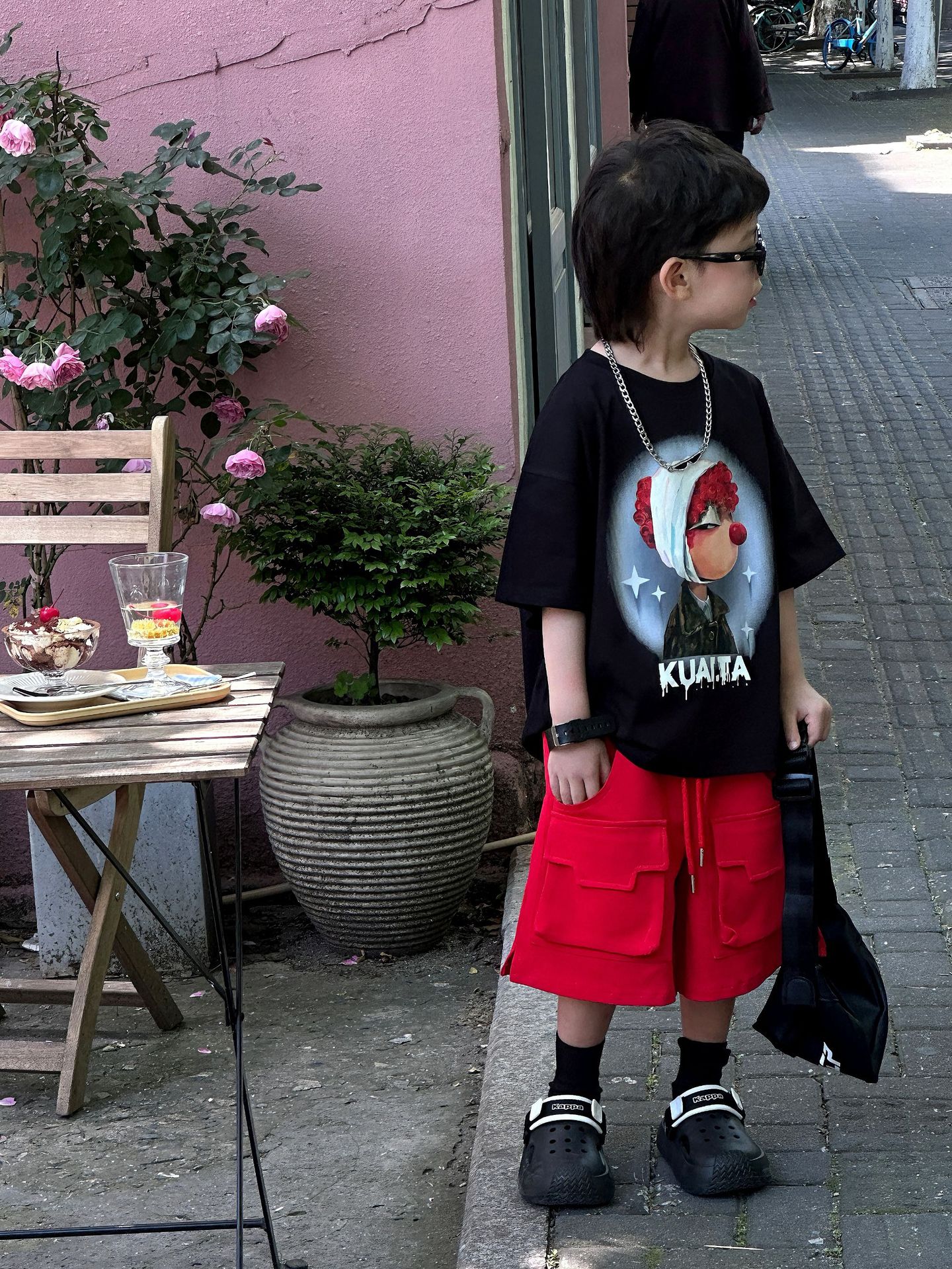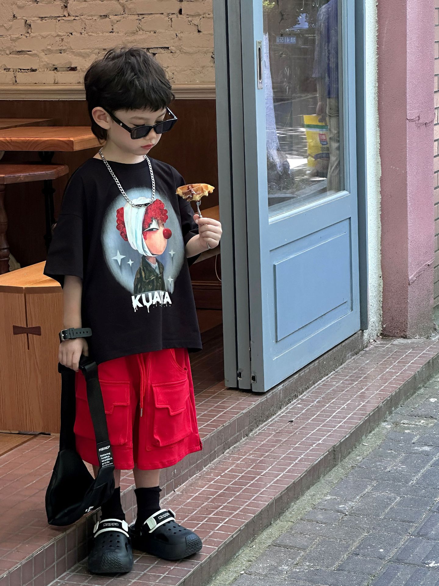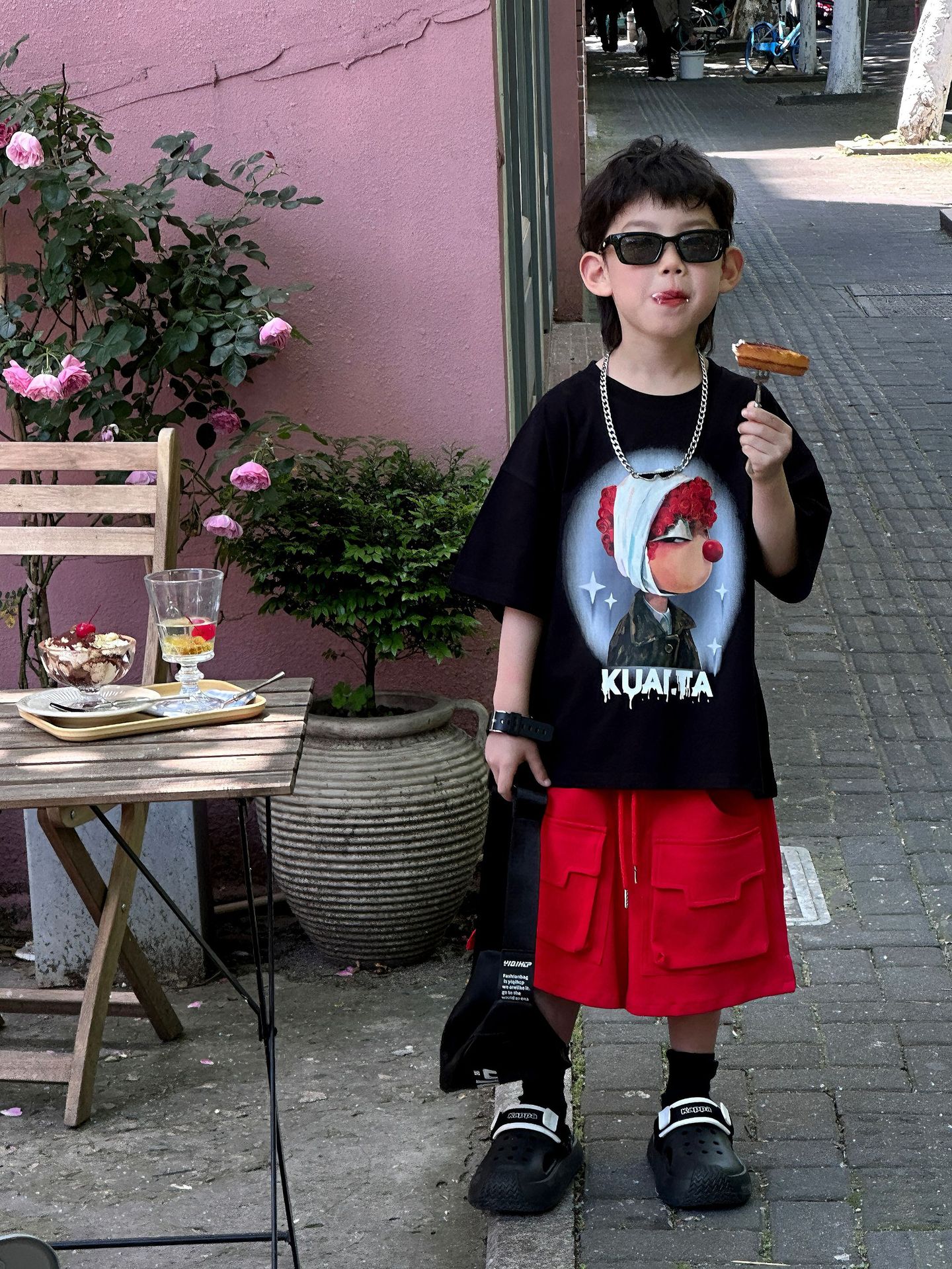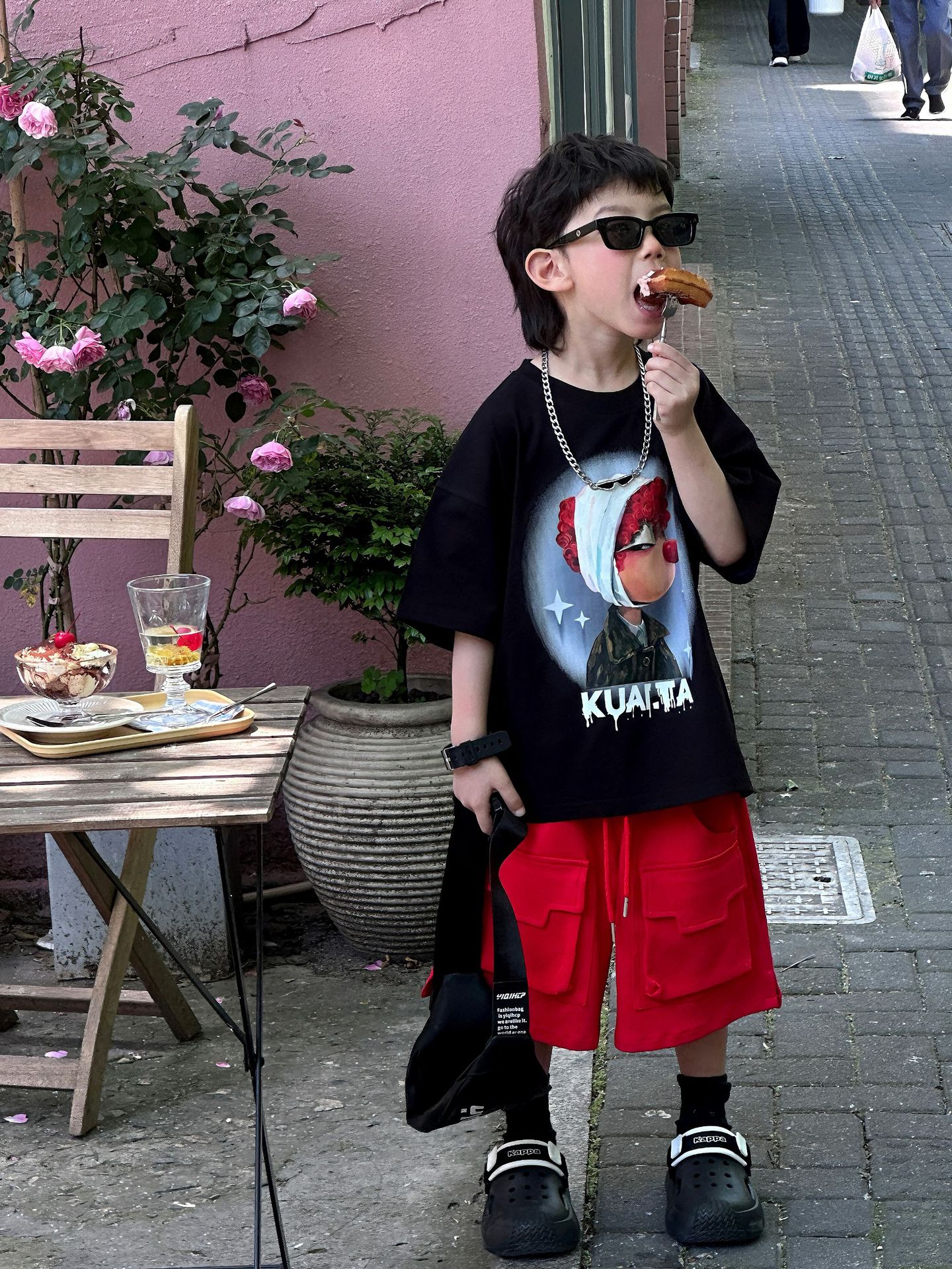 泰如夏季新款韩版男童时尚卡通洋气简约百搭短袖儿童T恤上衣
