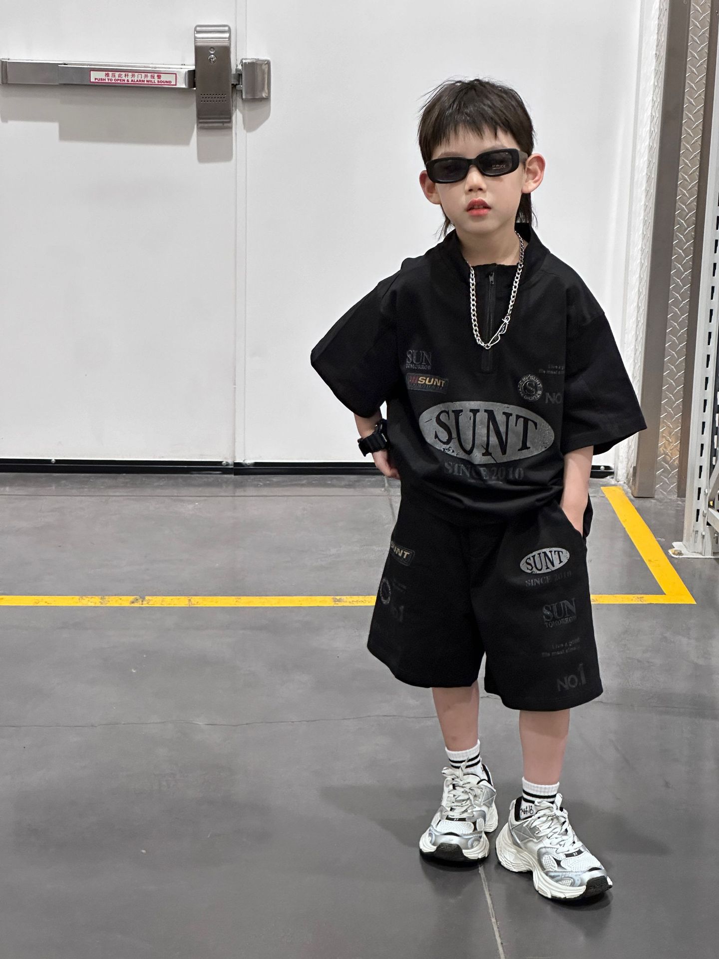 泰如夏季新款韩版男童时尚运动字母潮酷套装儿童上衣短裤潮