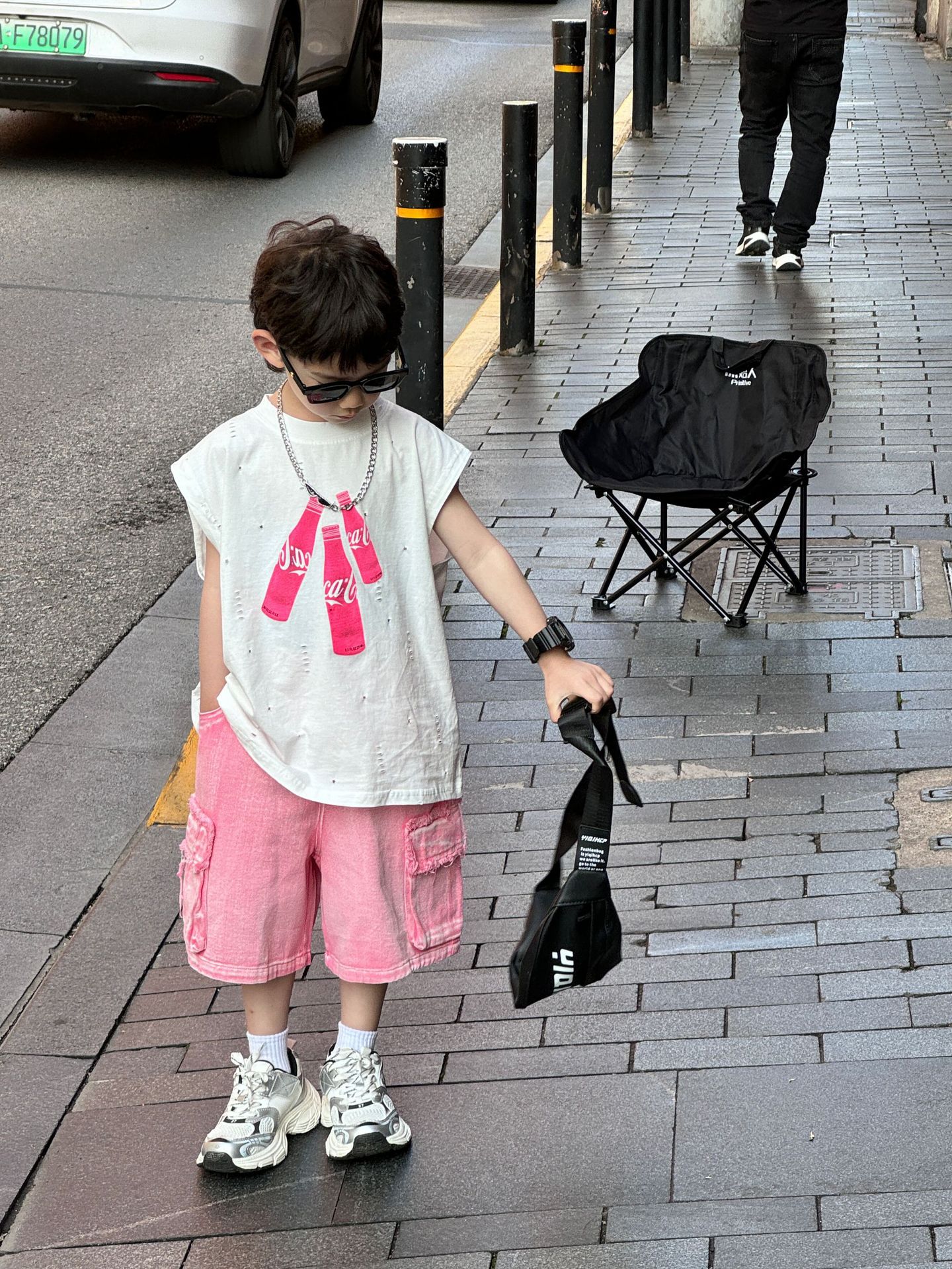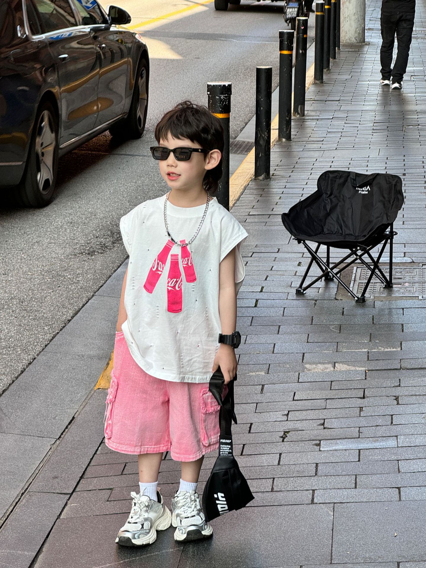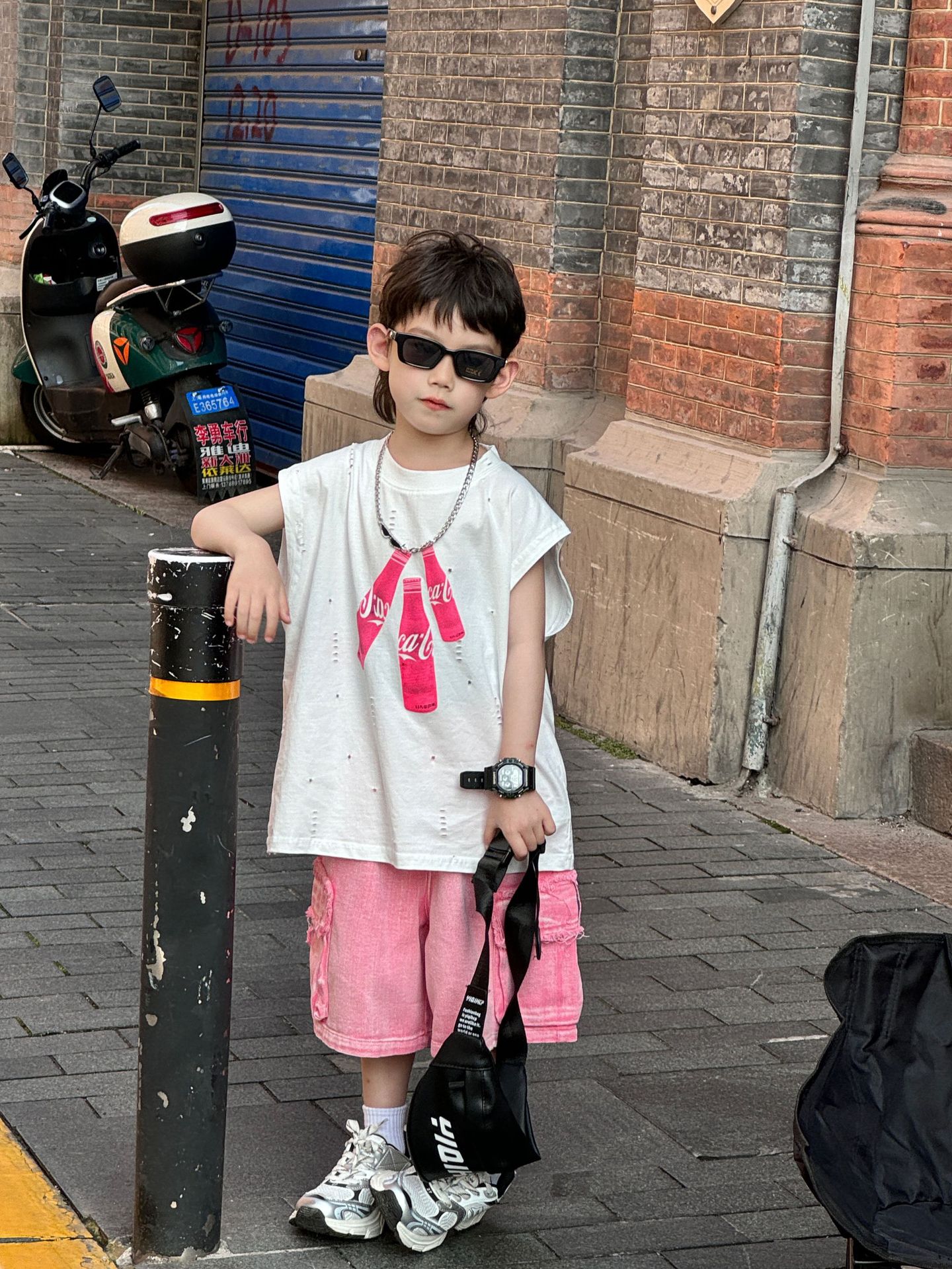 泰如夏季新款韩版男童时尚潮酷洋气套头无袖T恤儿童上衣潮