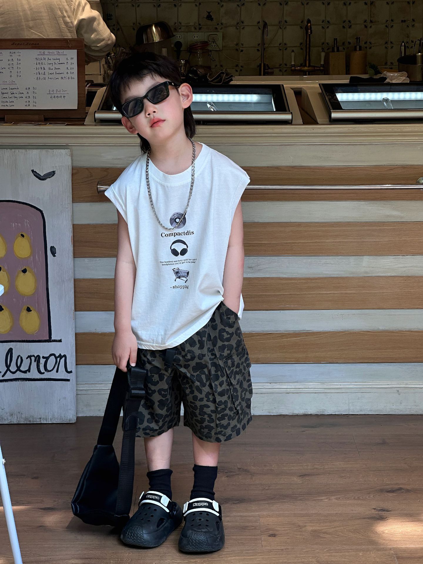 泰如夏季新款韩版男童百搭洋气印花简约背心儿童T恤上衣潮