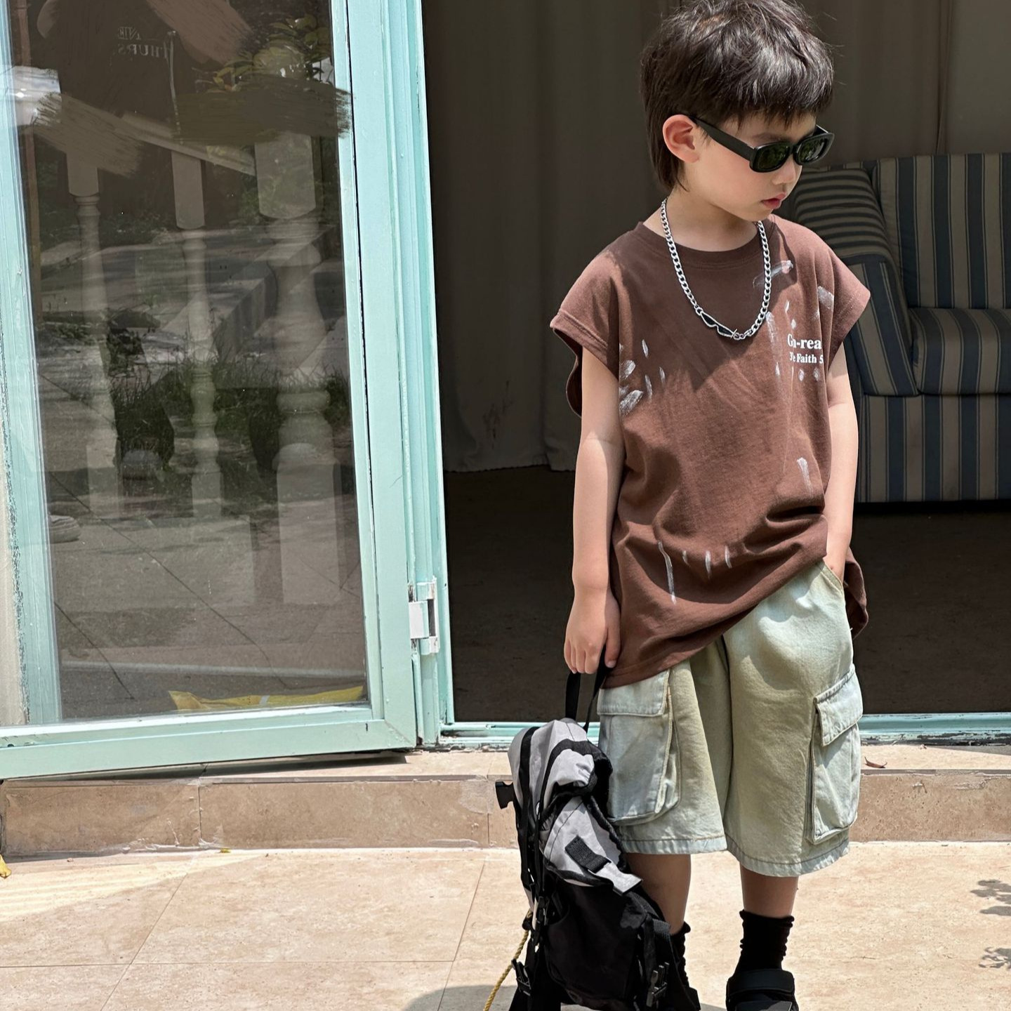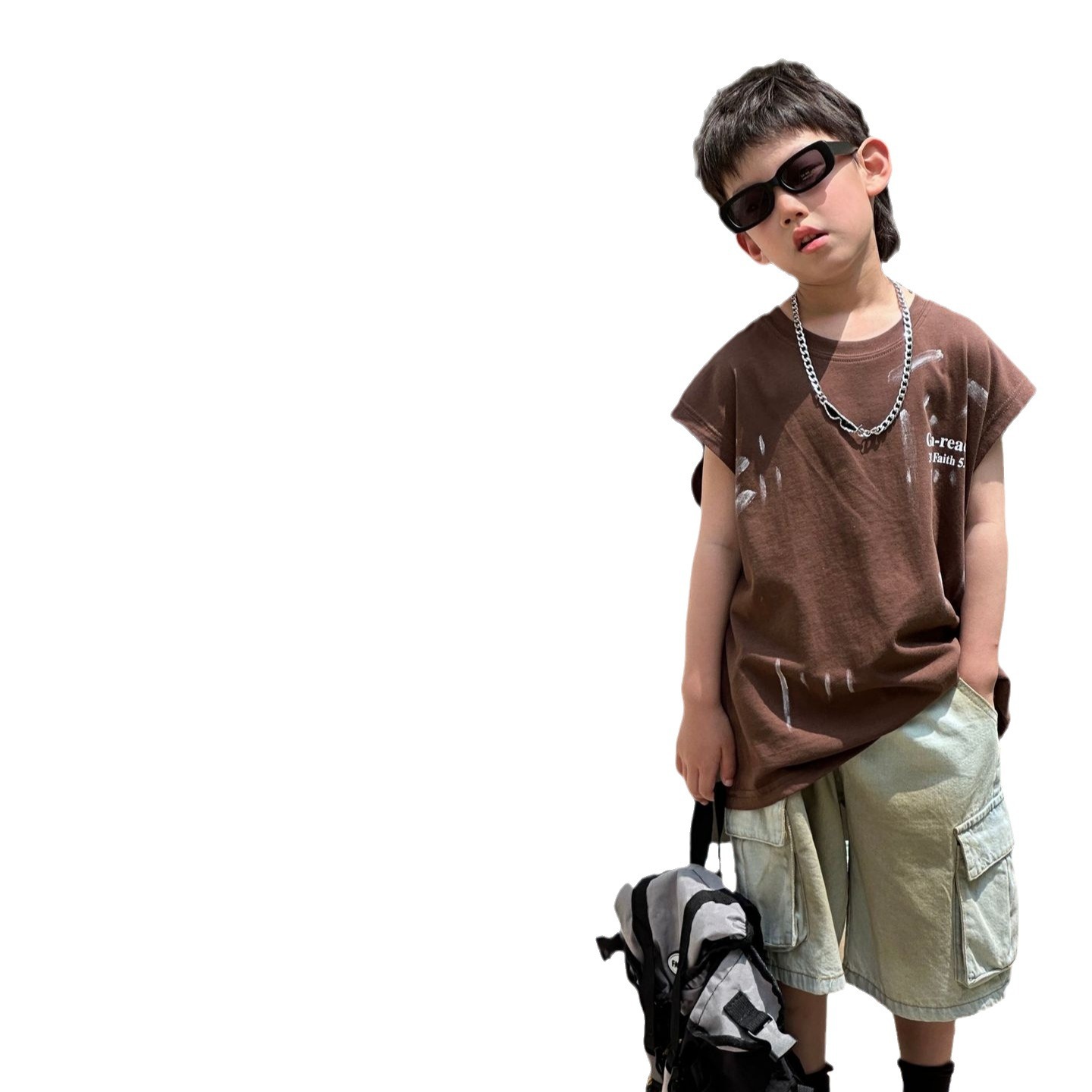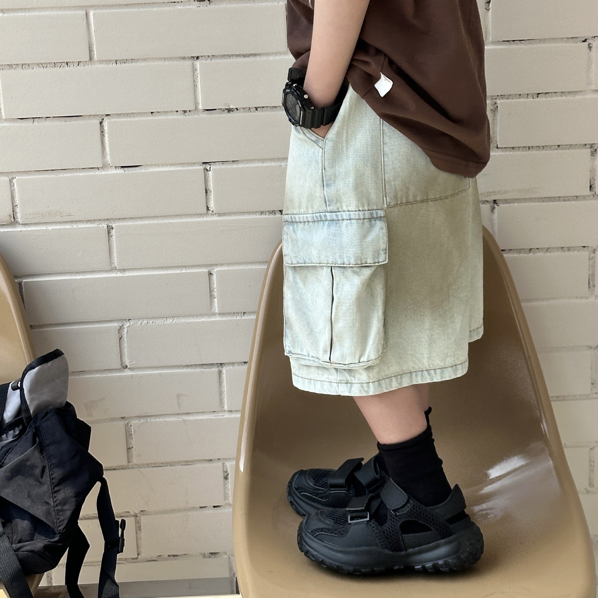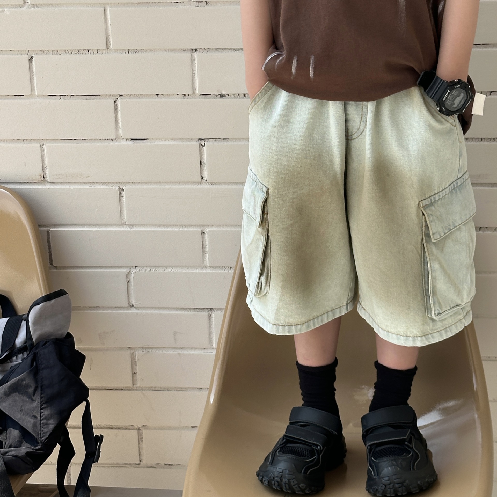 泰如夏季新款韩版男童时尚百搭潮酷晕染工装牛仔短裤儿童裤潮