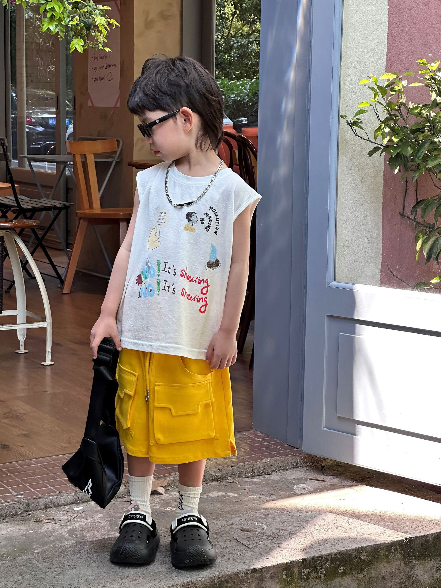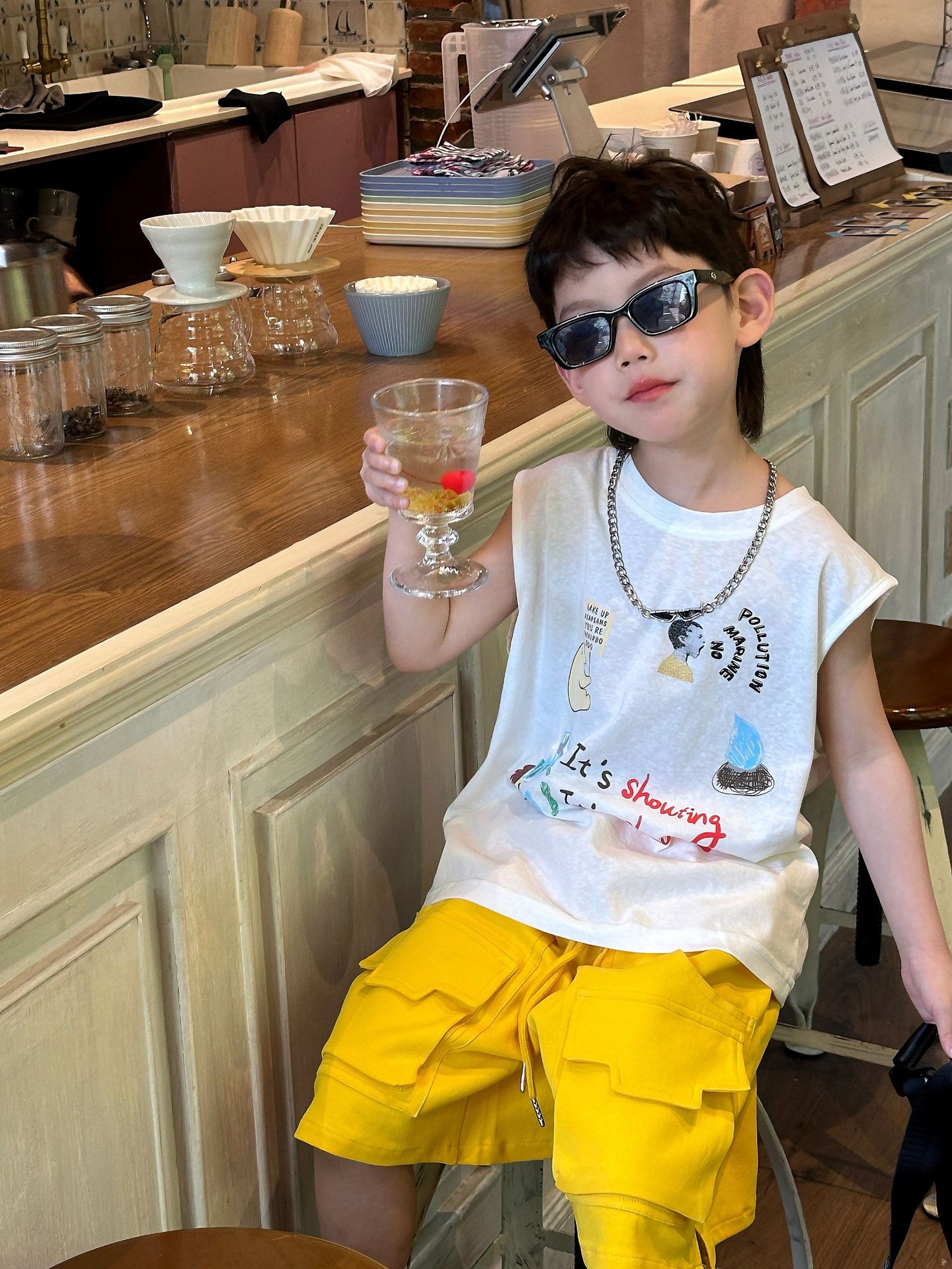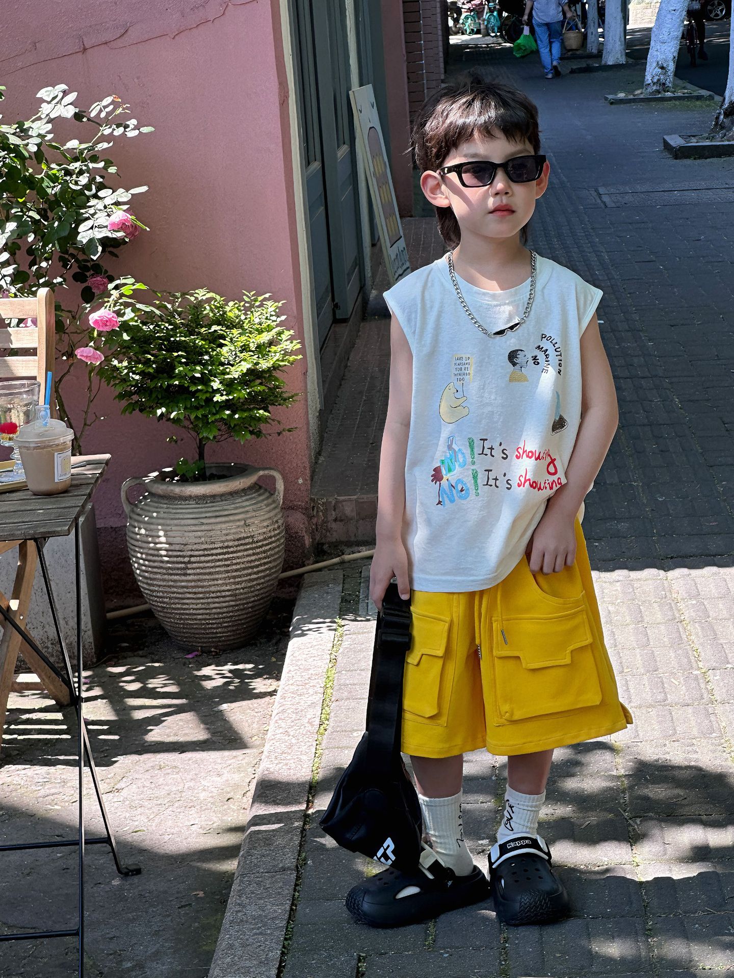 泰如夏季新款韩版男童时尚百搭卡通印花设计感背心儿童T恤潮