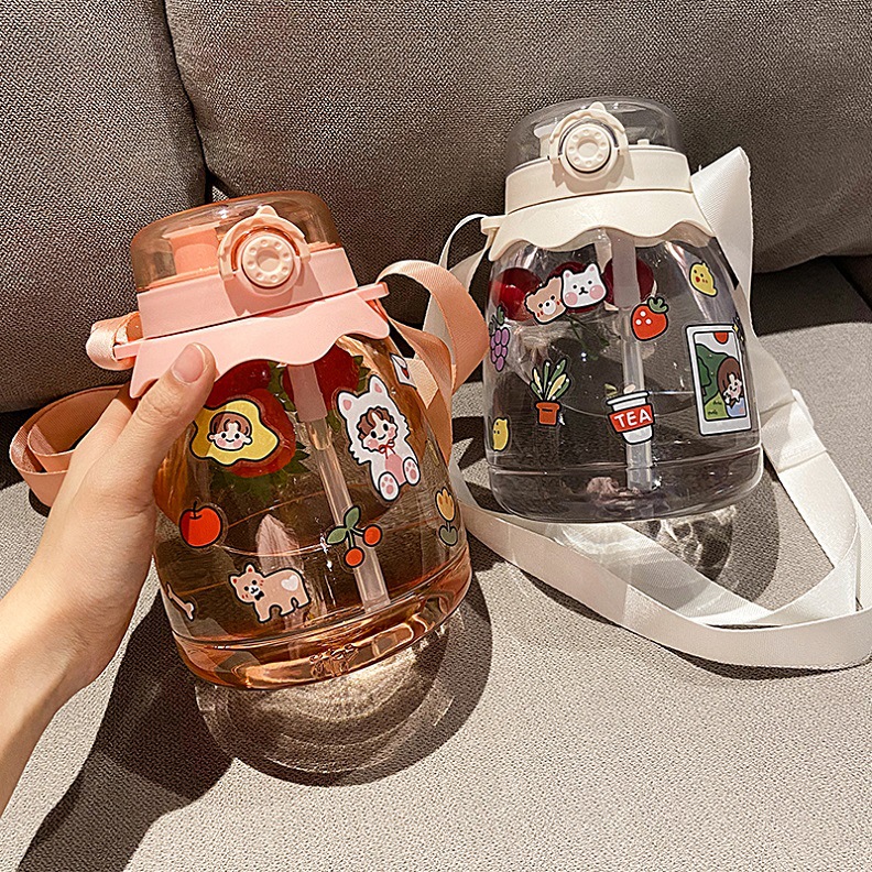 新款夏季大肚塑料水杯子网红高颜值大容量儿童双饮大肚子便携水壶
