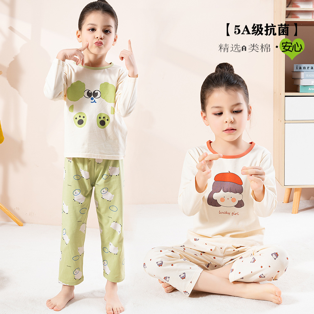 春夏季家居服纯棉抑菌长袖卡通儿童套装女孩宽松大童宝宝女童睡衣