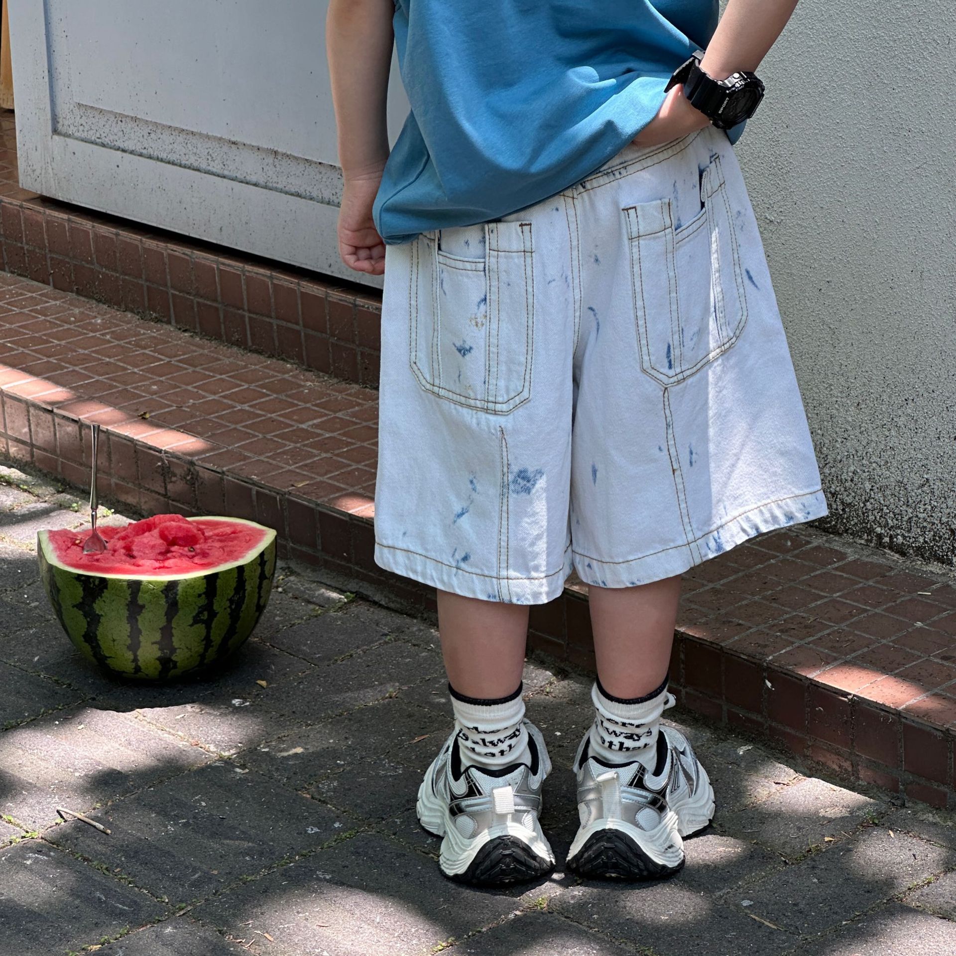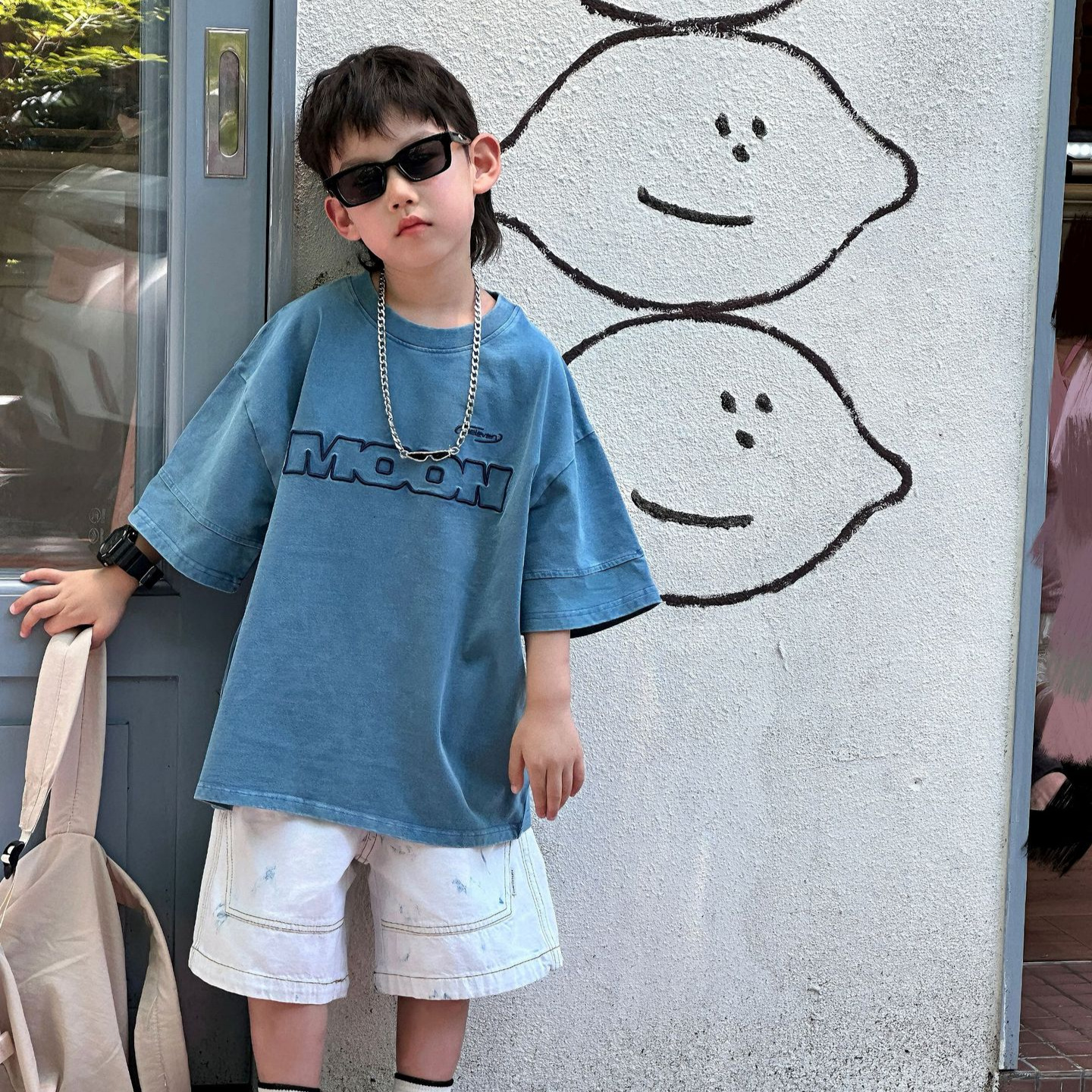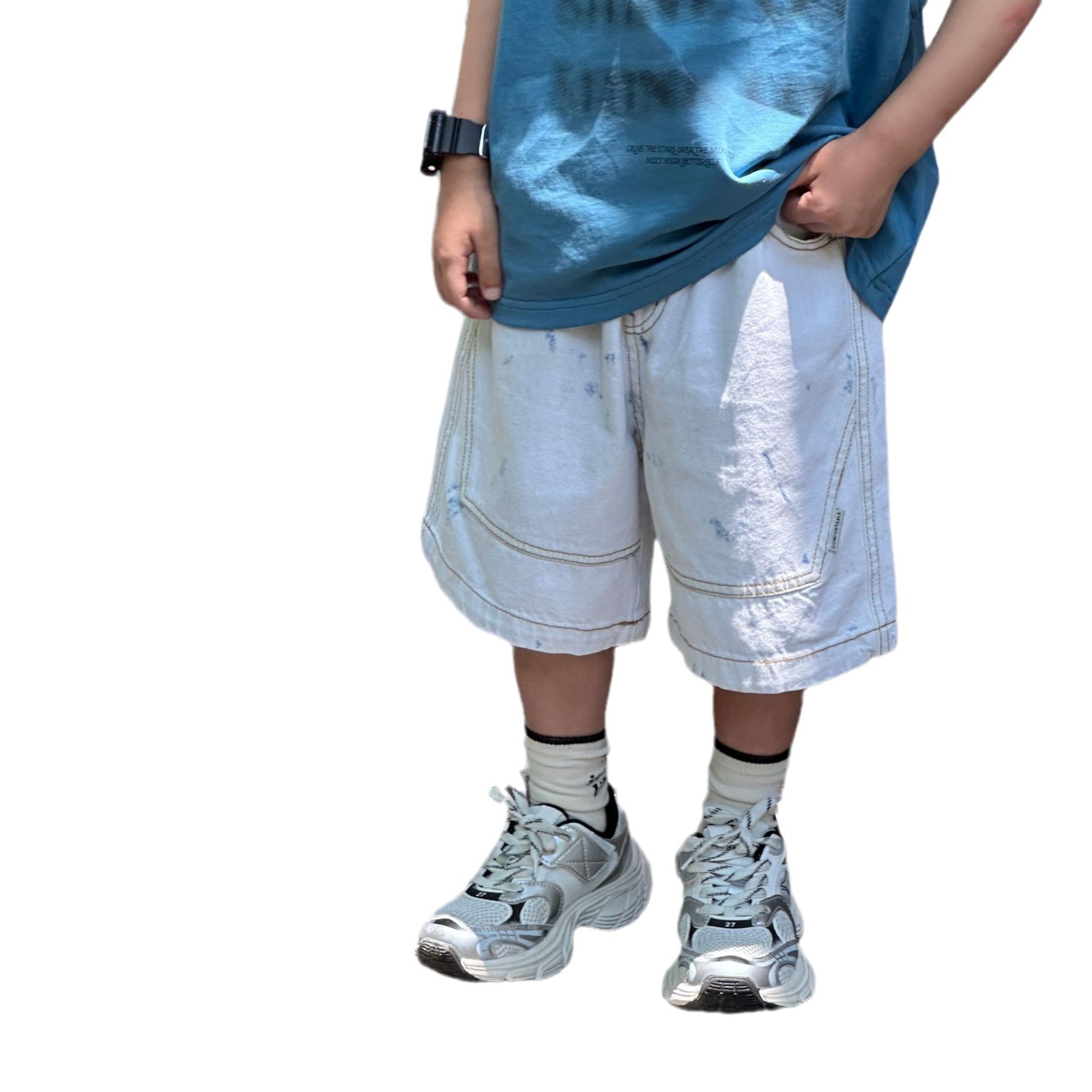 泰如夏季新款韩版男童时尚设计感扎染百搭牛仔裤儿童短裤潮