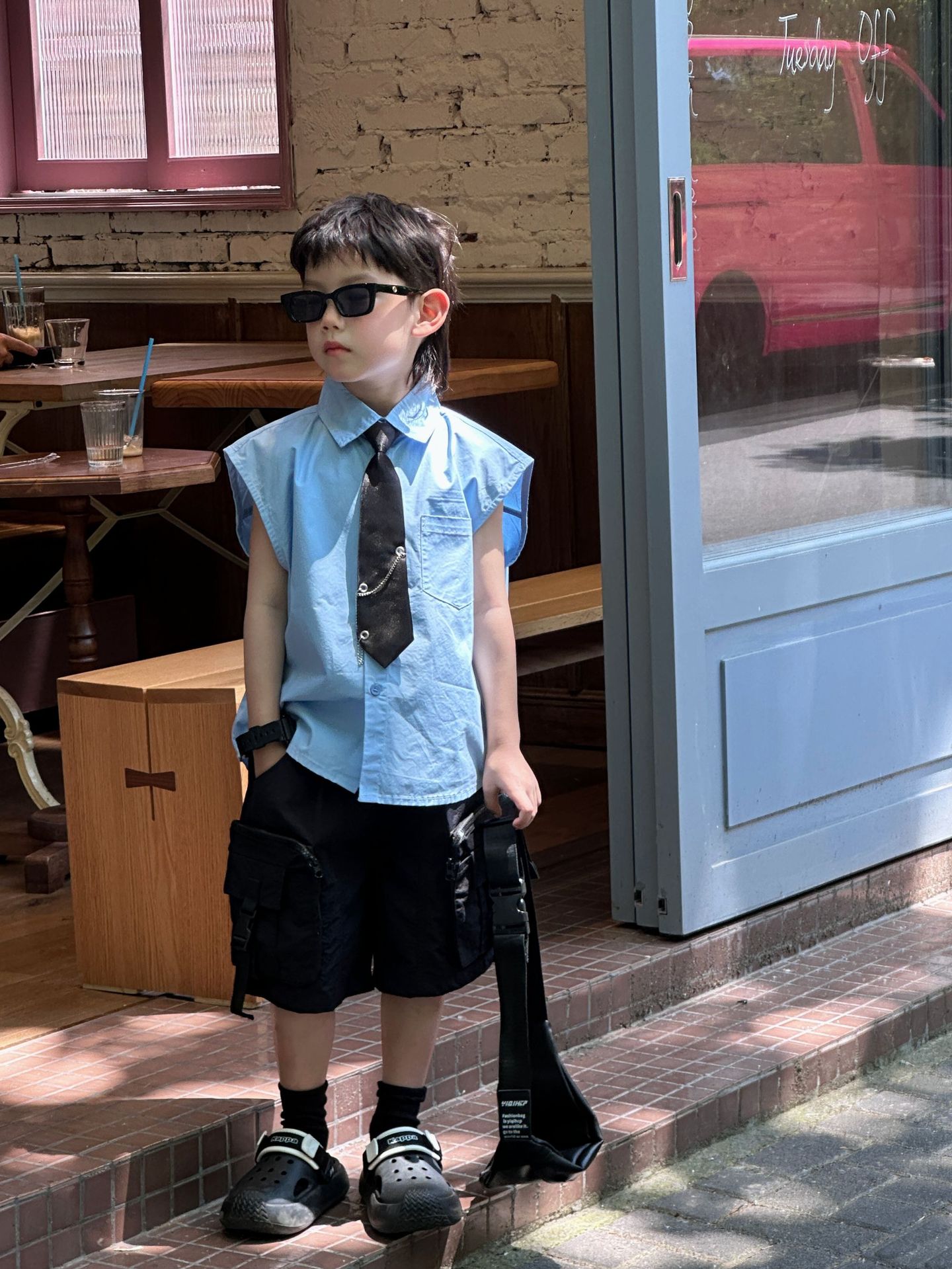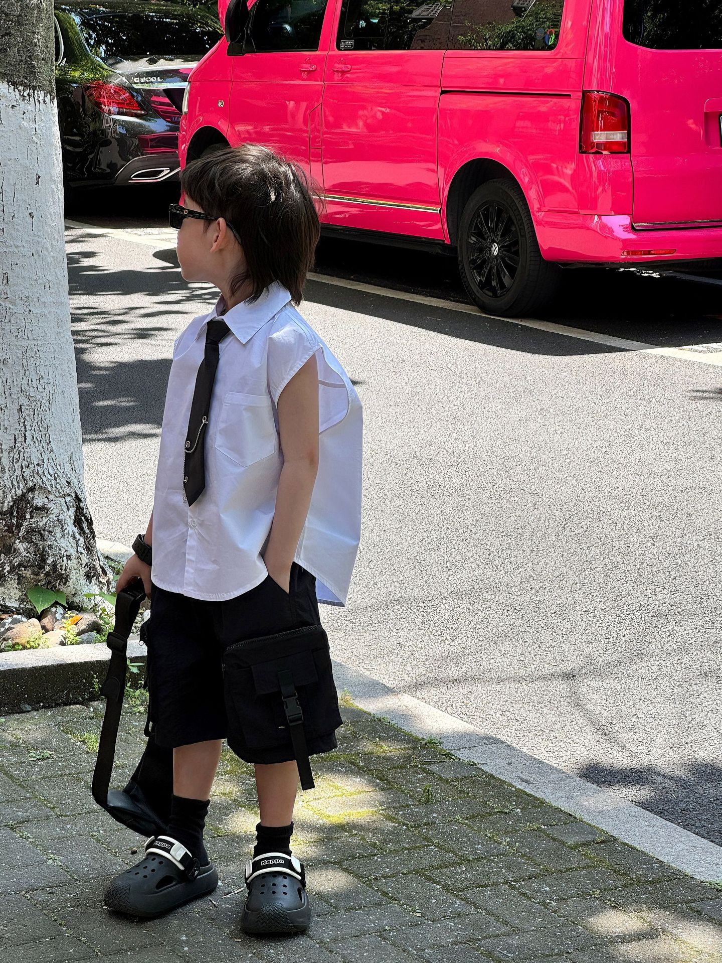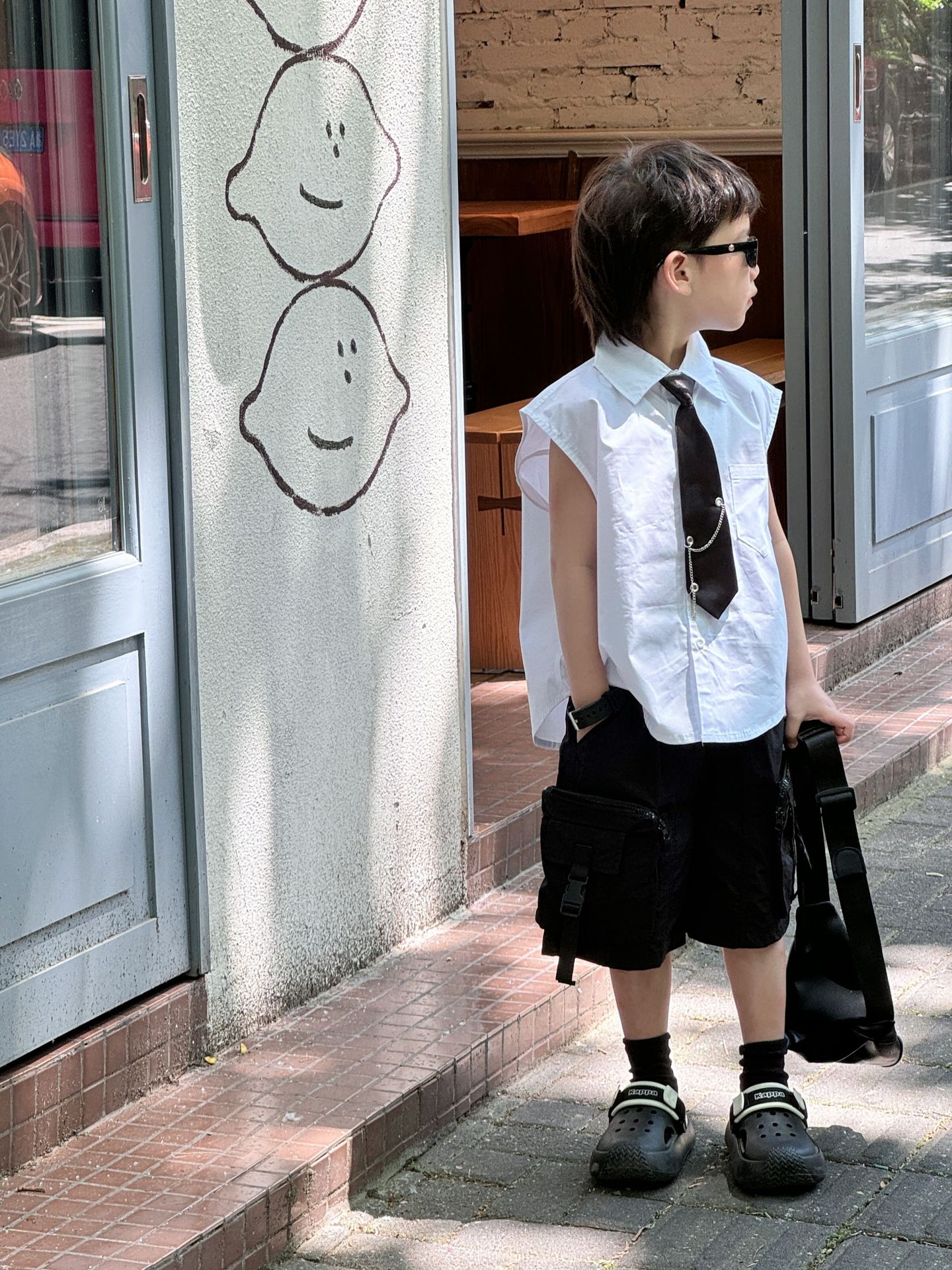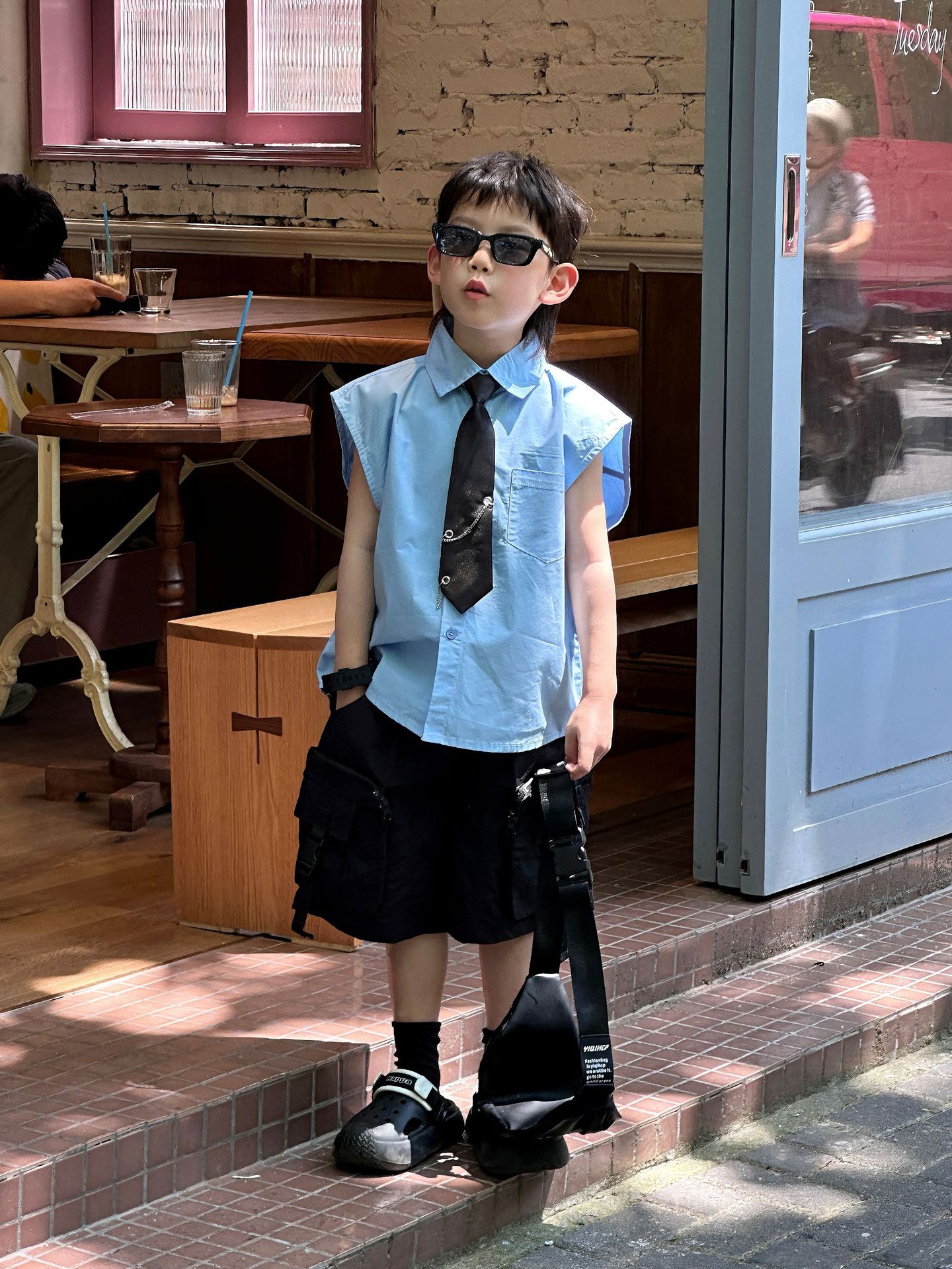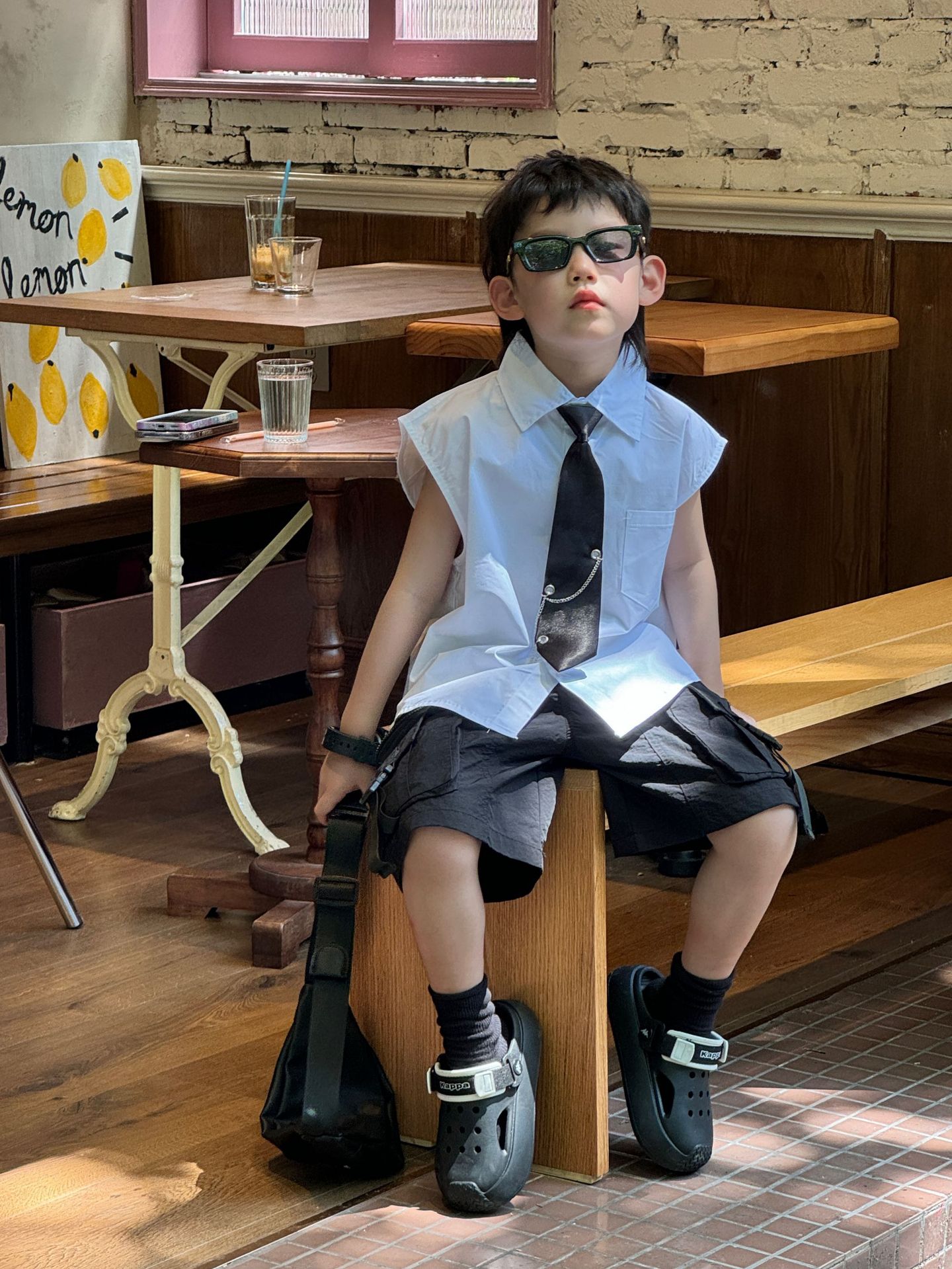 泰如夏季新款韩版男童时尚百搭洋气纯色学院风背心衬衫儿童潮