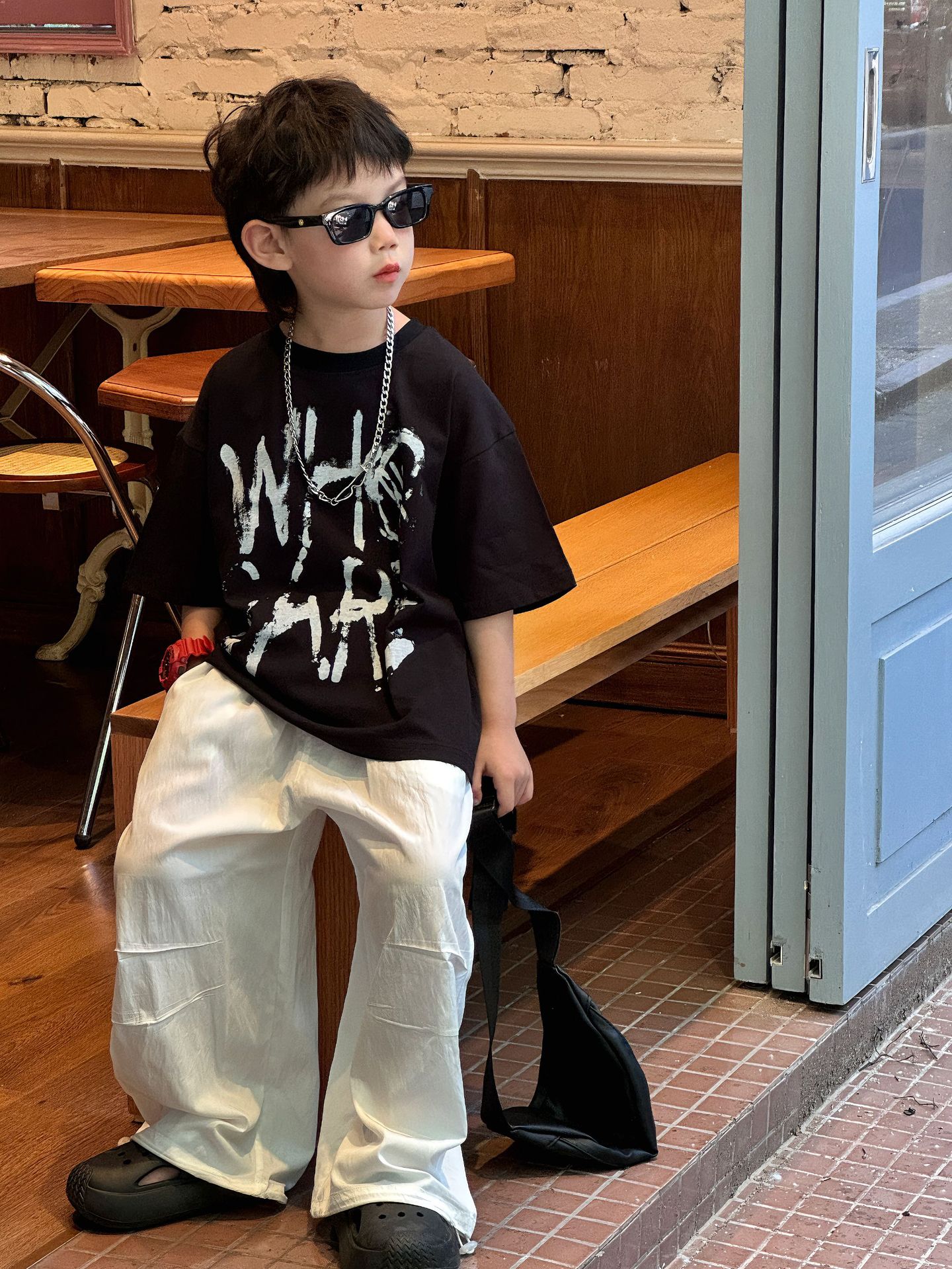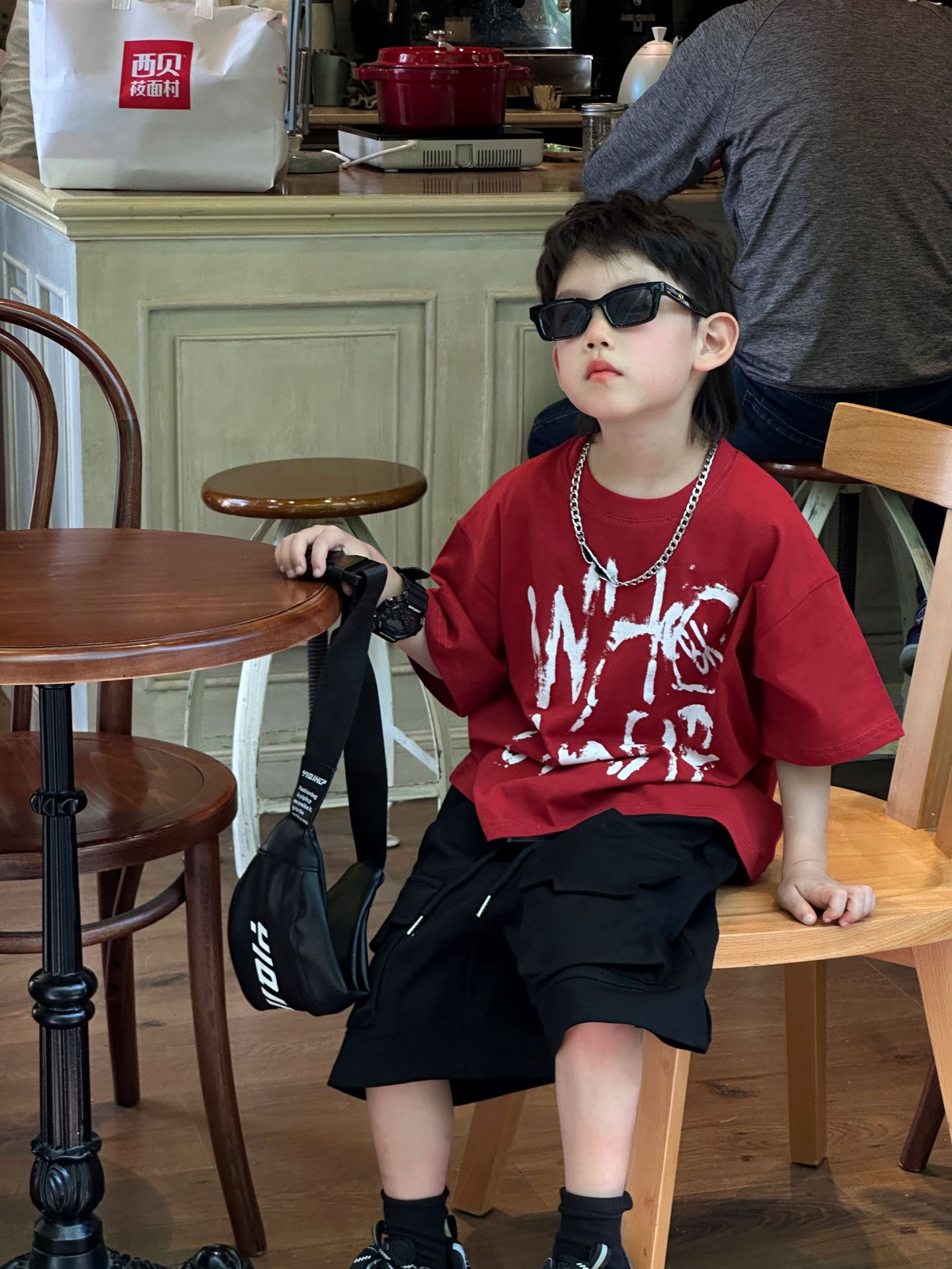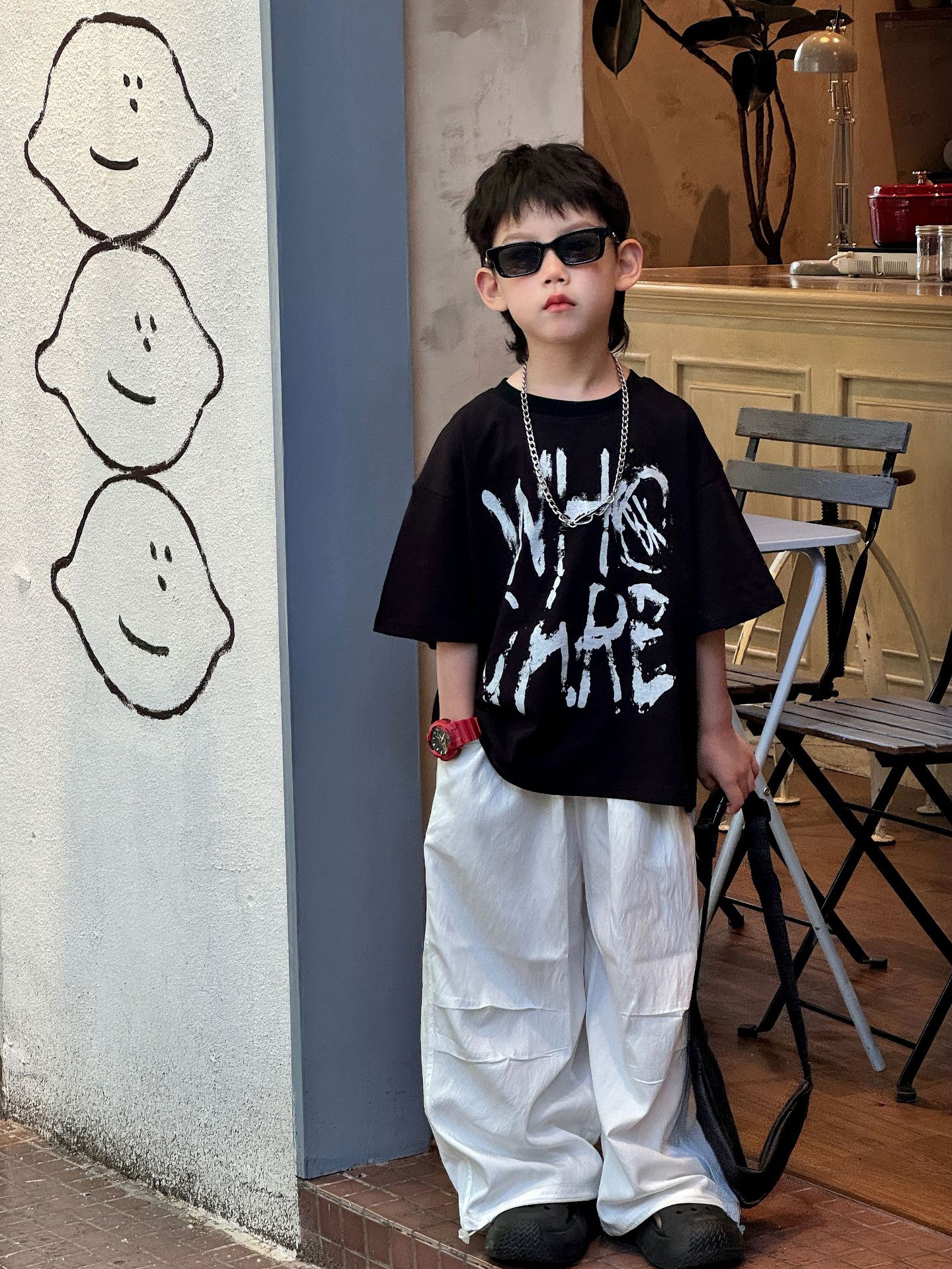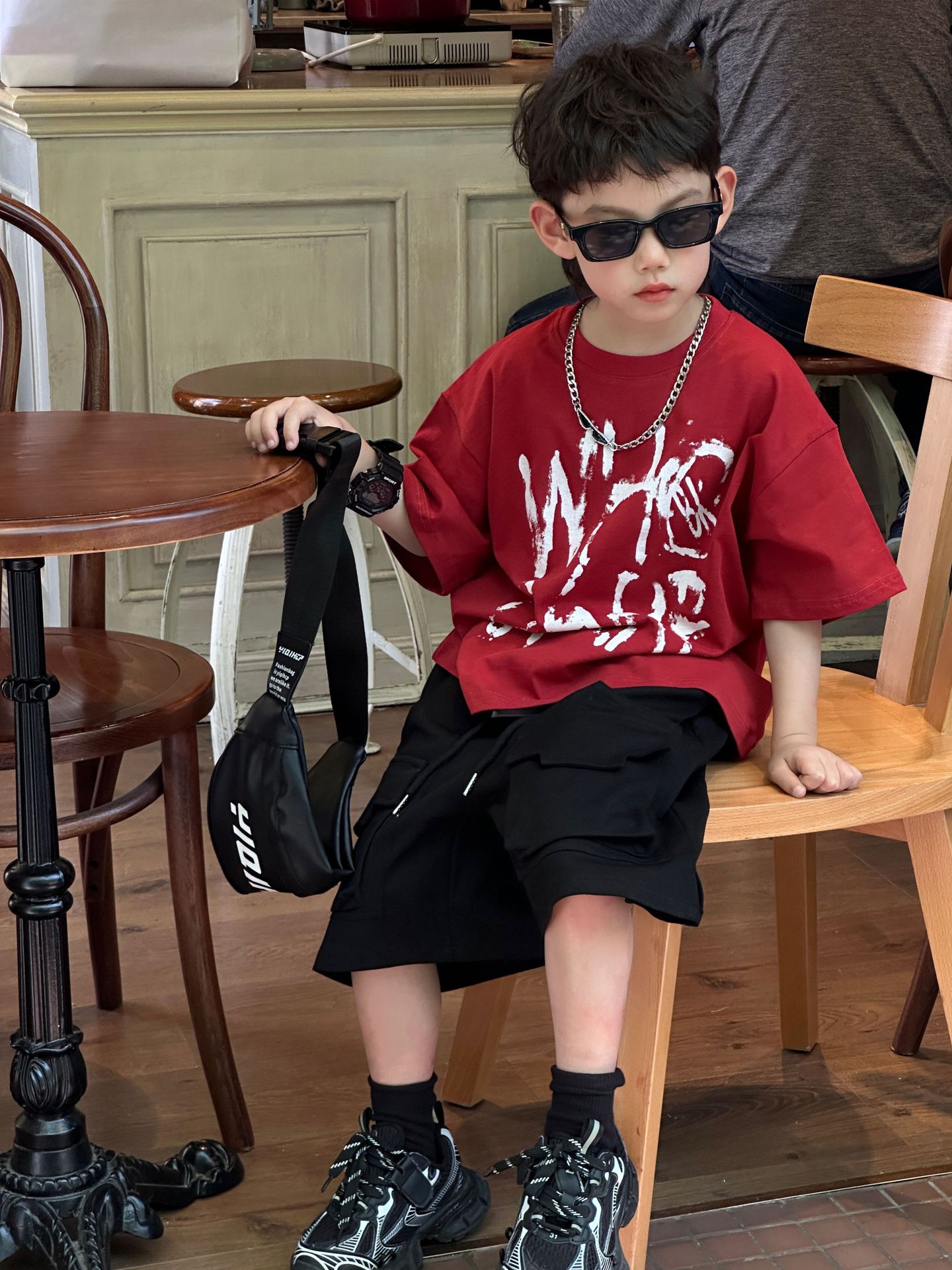 泰如夏季新款韩版男童时尚百搭设计感字母短袖儿童T恤上衣潮