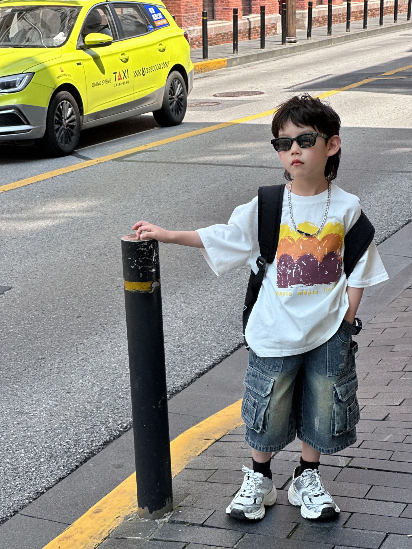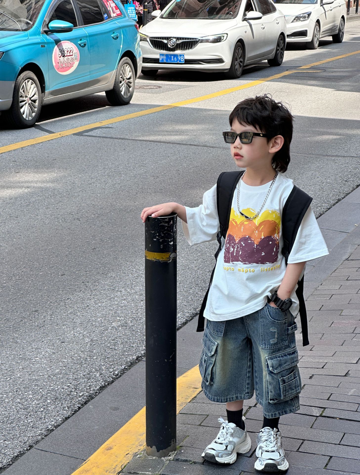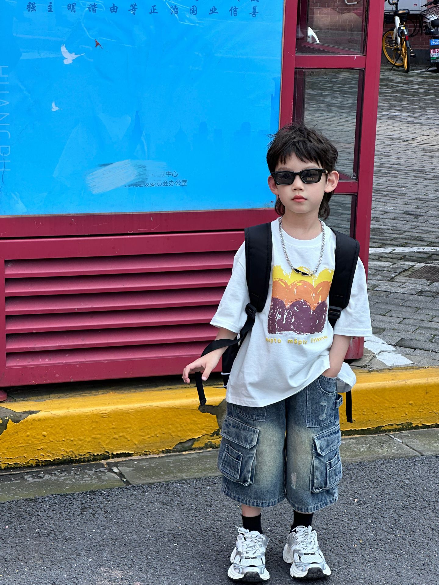 泰如夏季新款韩版男童时尚字母洋气短袖T恤儿童百搭上衣潮