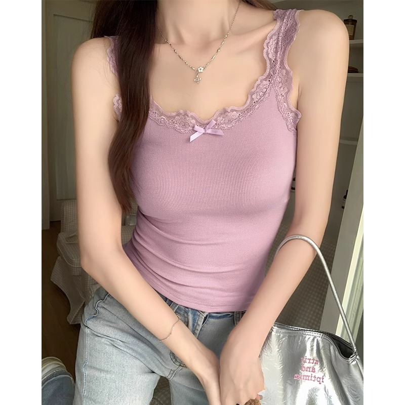 纯色蕾丝花边吊带背心女夏外穿设计感甜辣妹修身短款内搭纯欲上衣