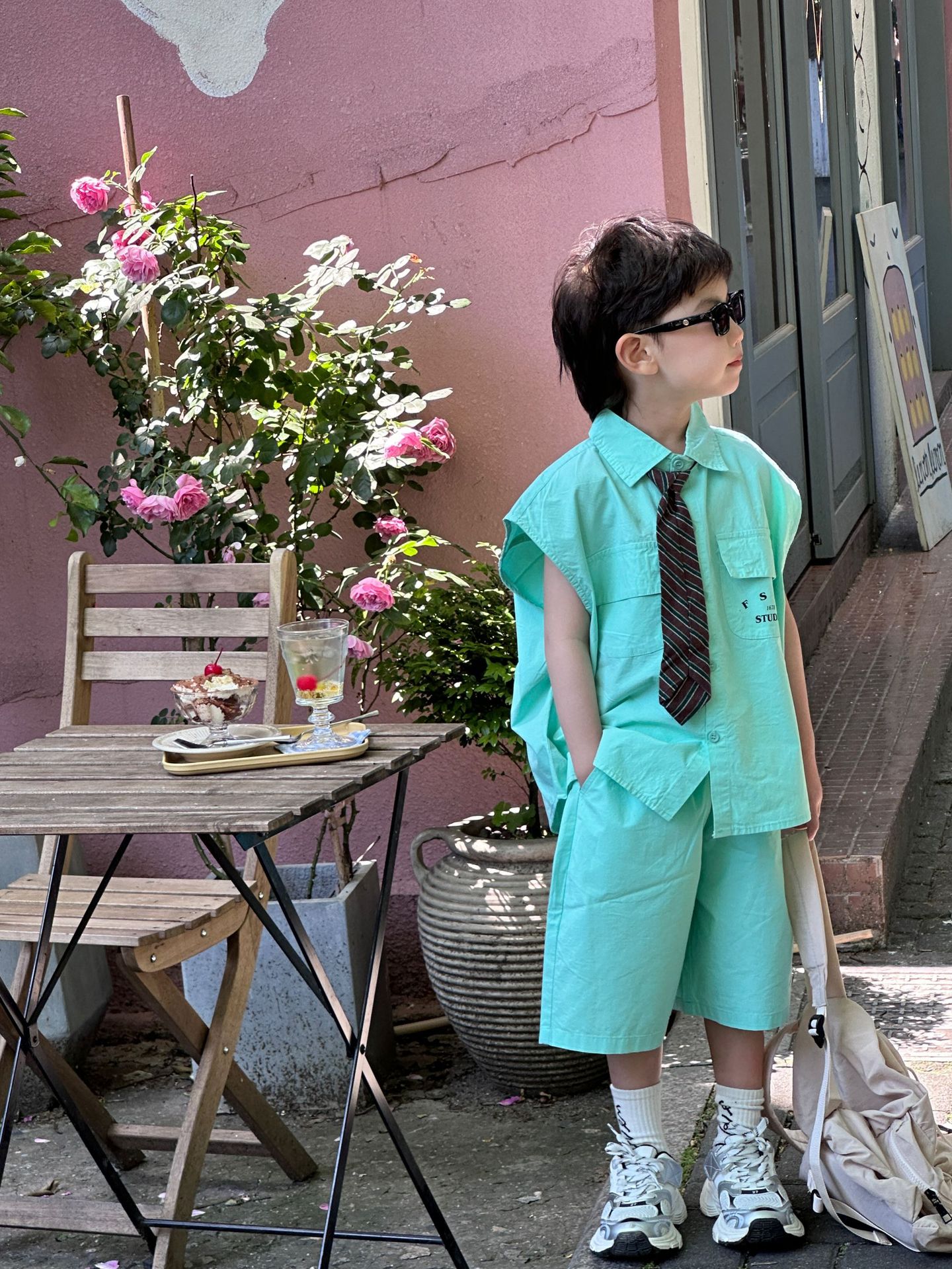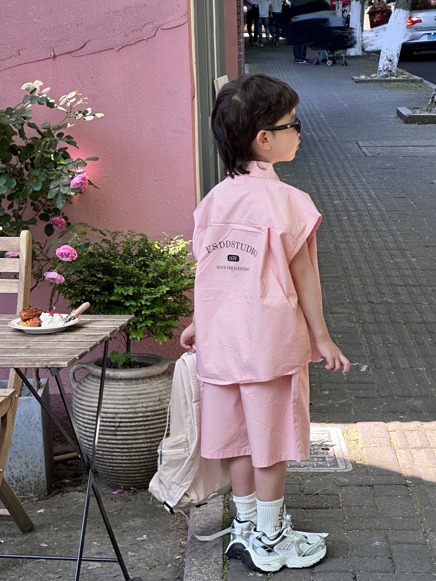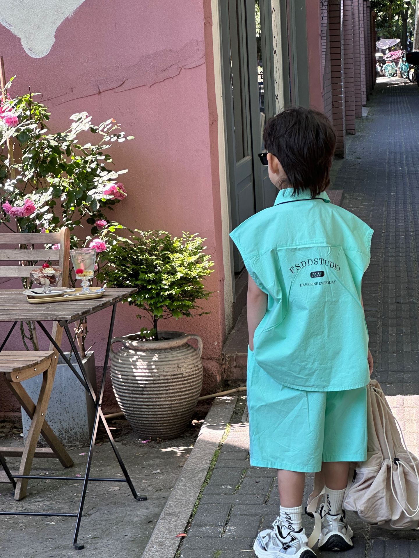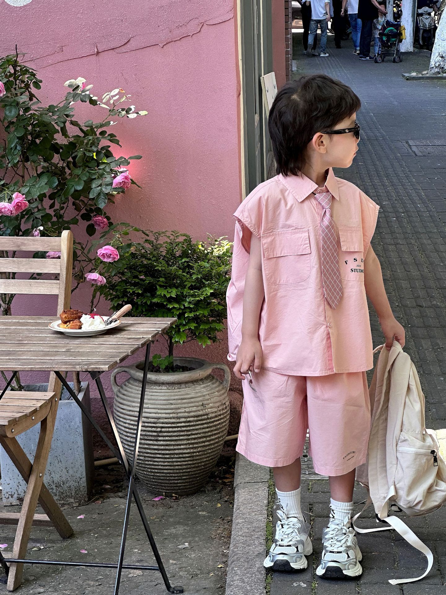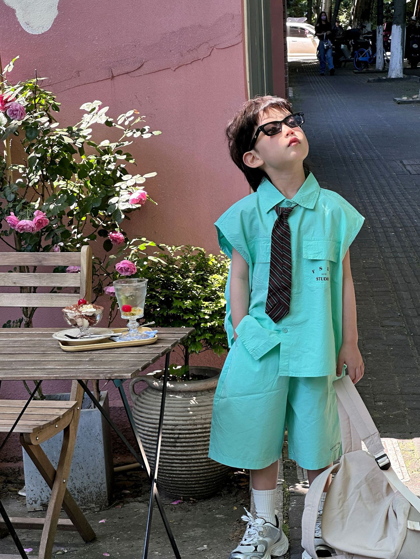 泰如夏季新款韩版男童时尚百搭纯色休闲字母套装儿童上衣短裤