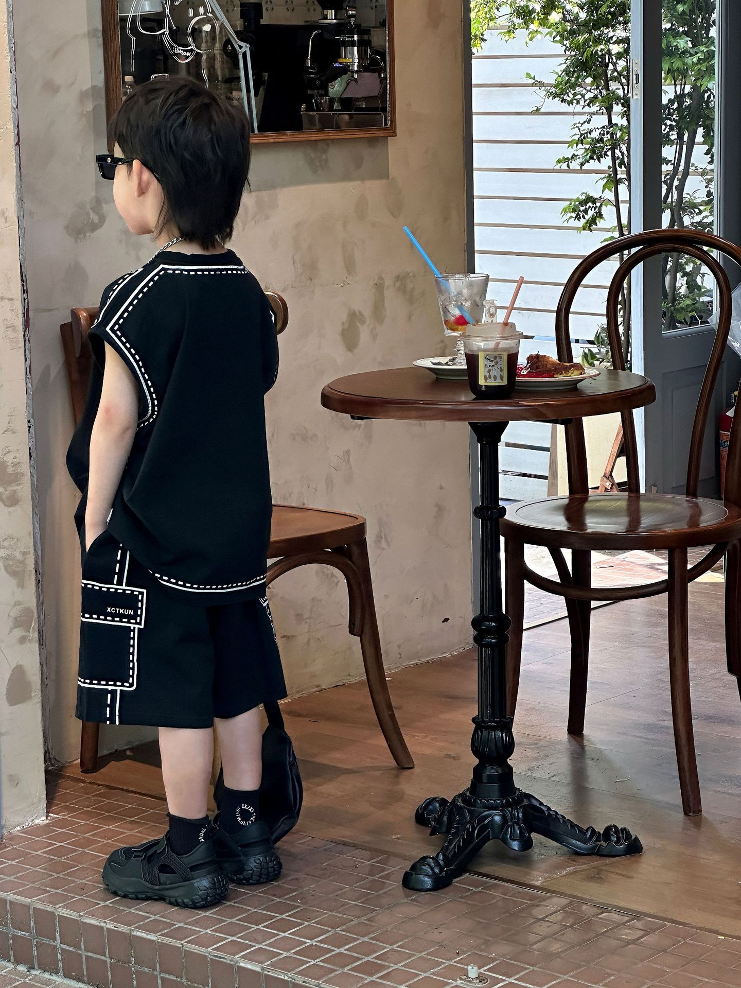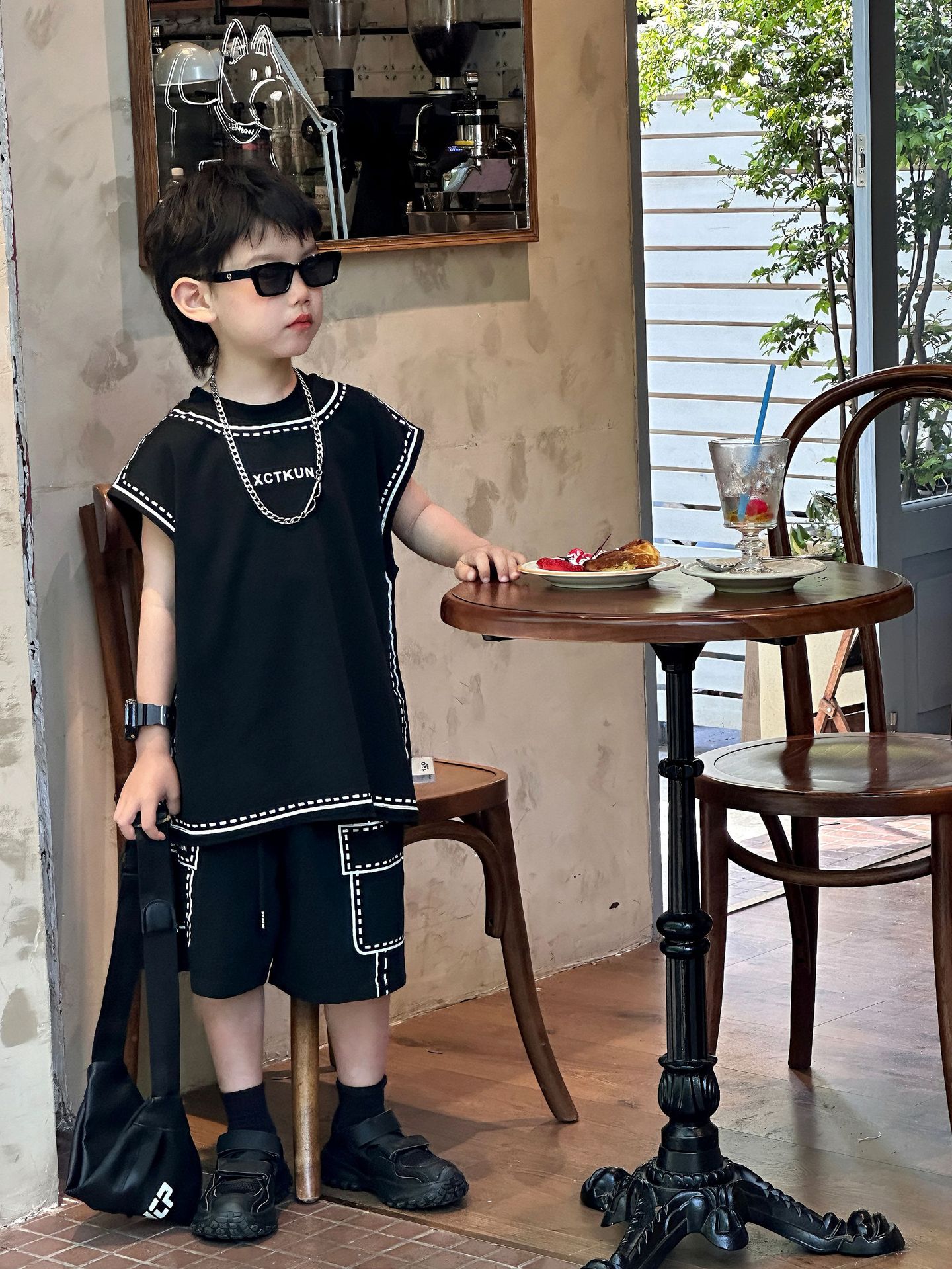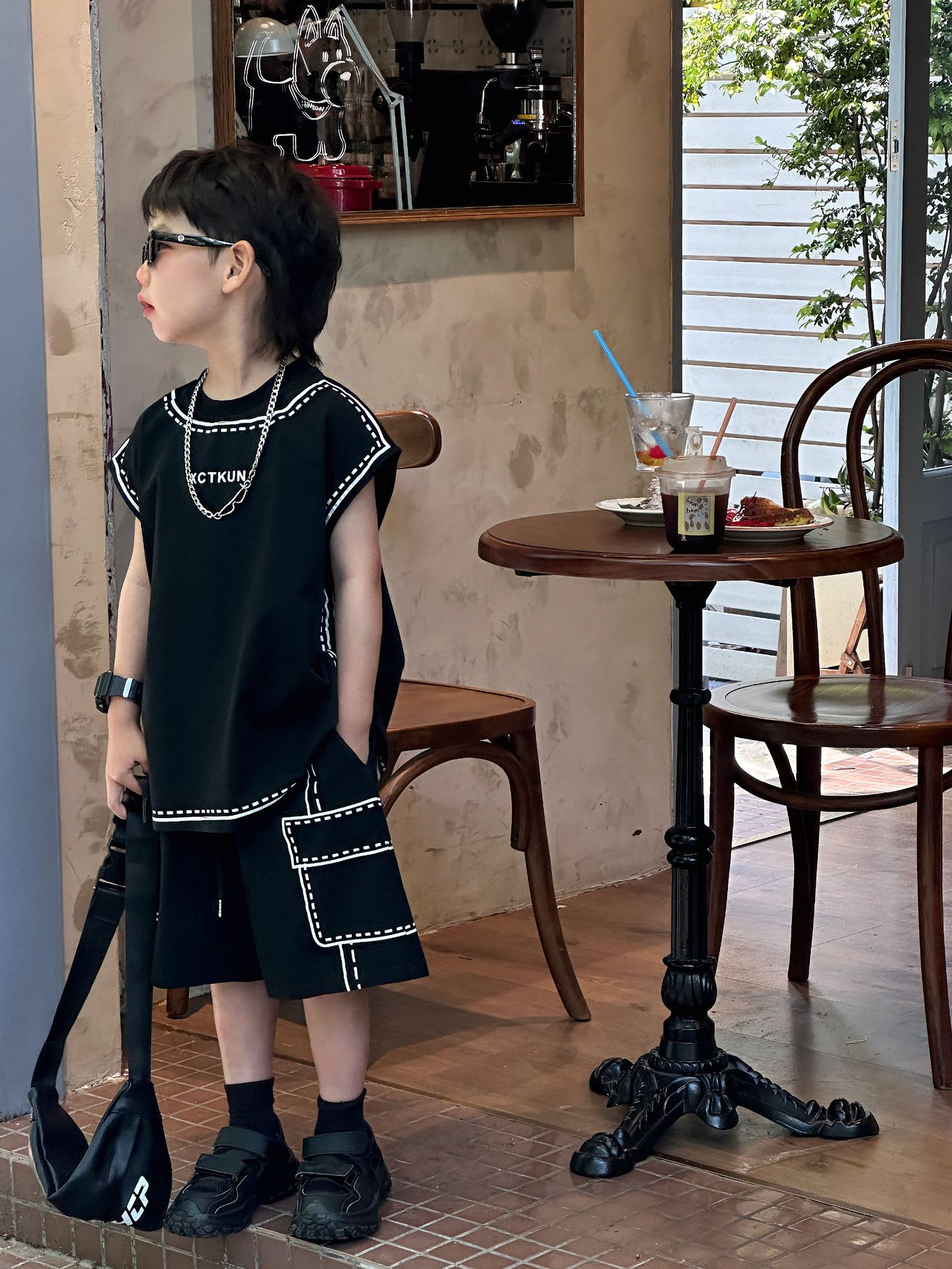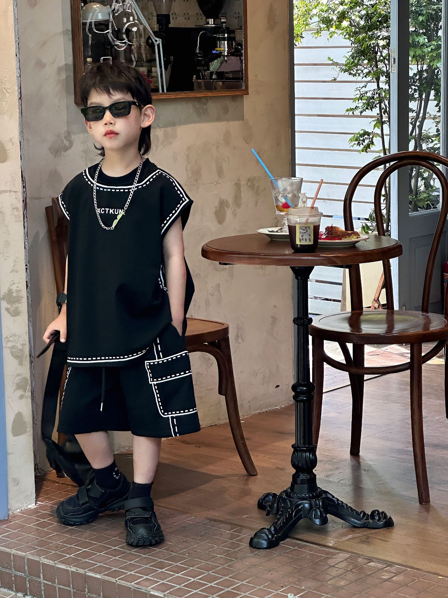 泰如夏季新款韩版男童时尚百搭设计感洋气套装儿童上衣短裤潮