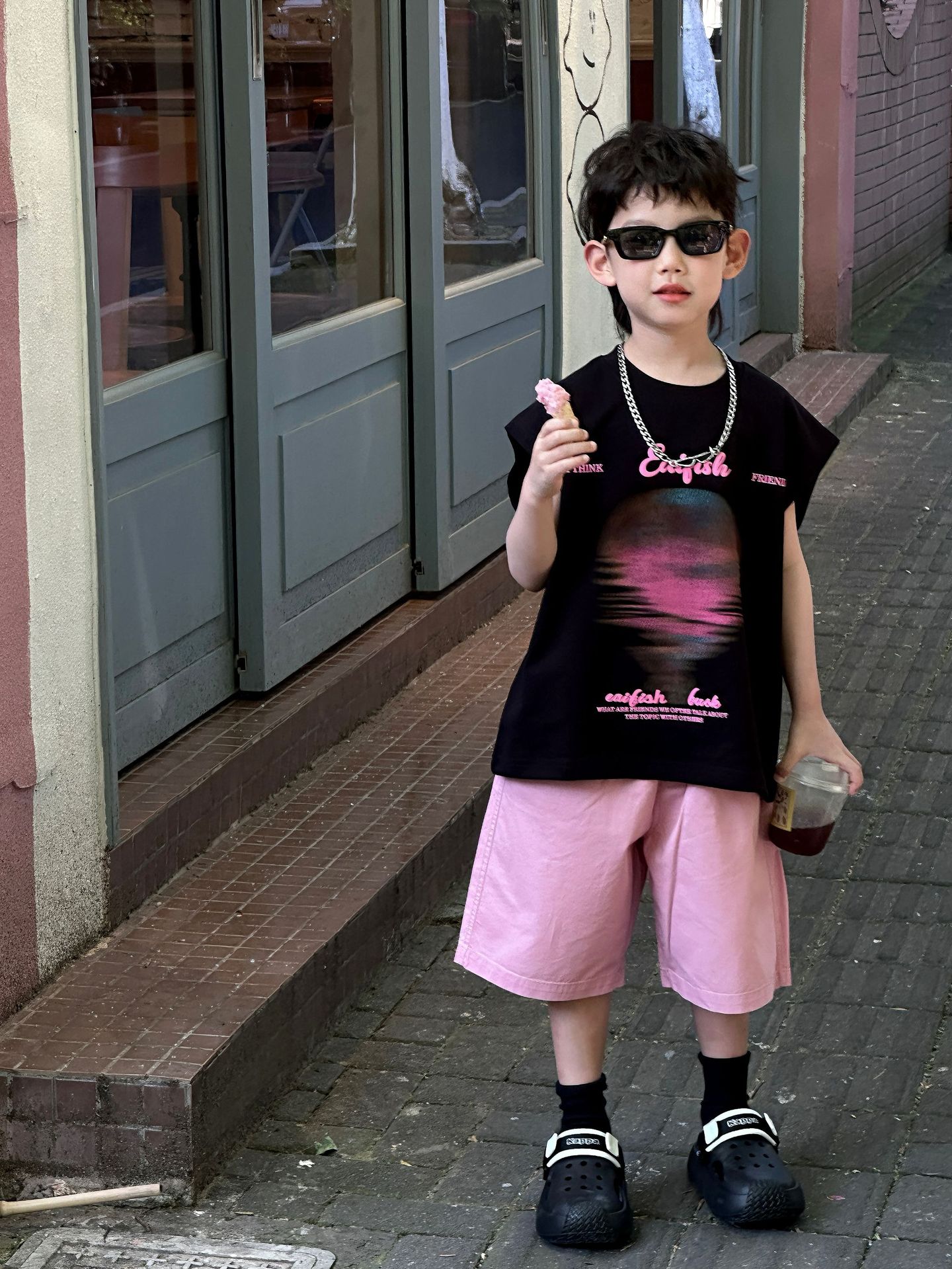 泰如夏季新款韩版男童时尚百搭氛围感套装儿童洋气上衣短裤潮