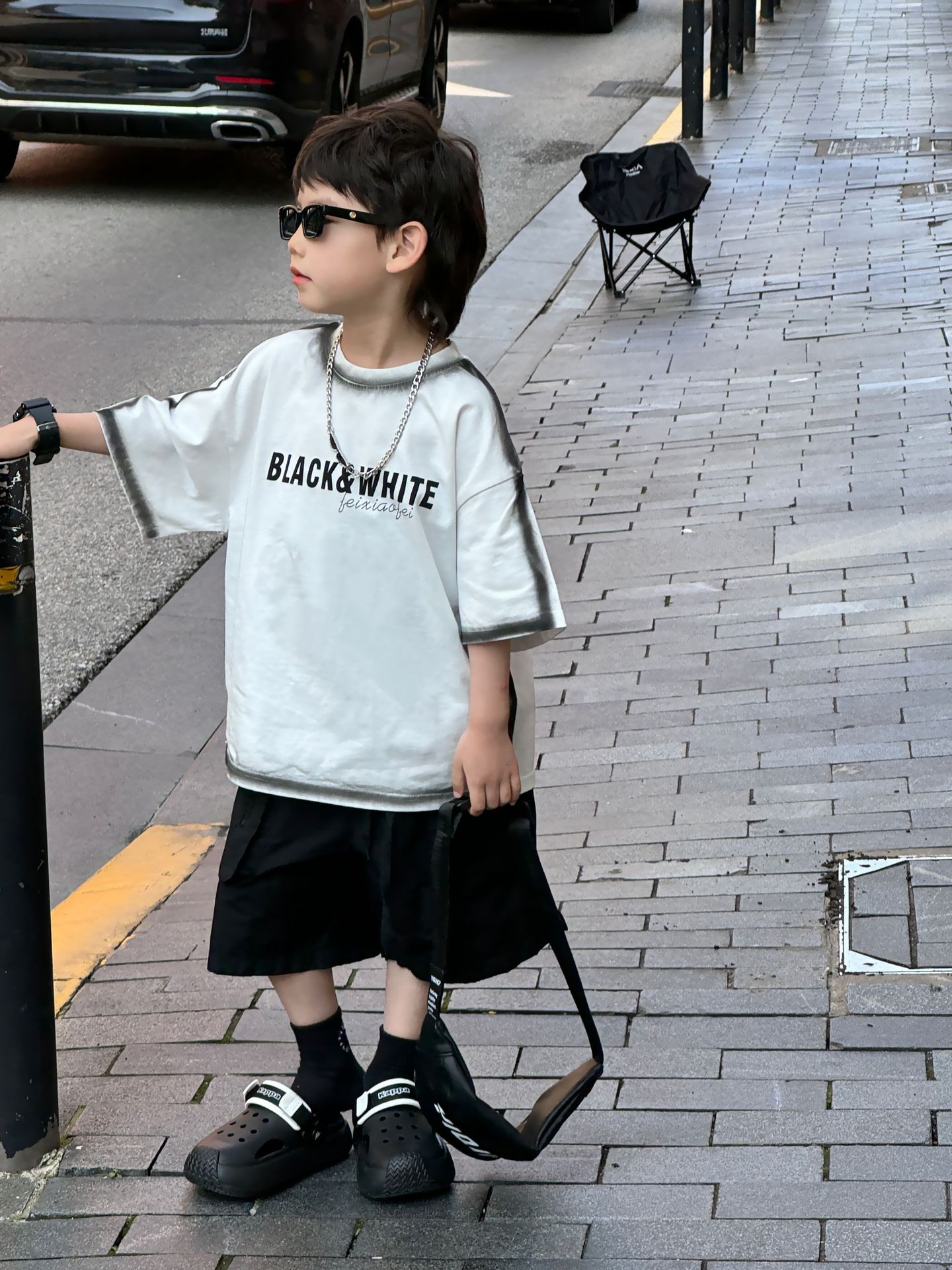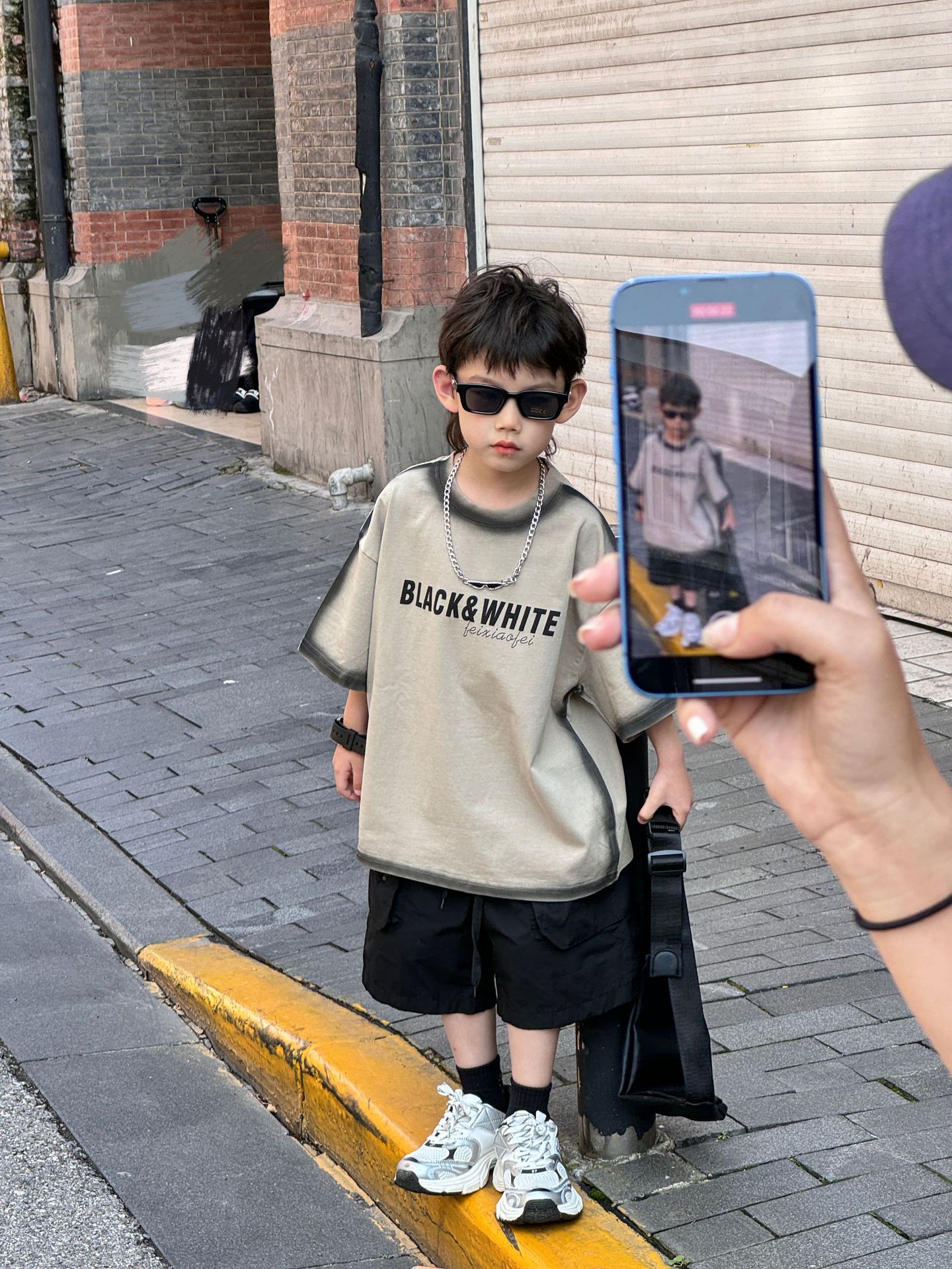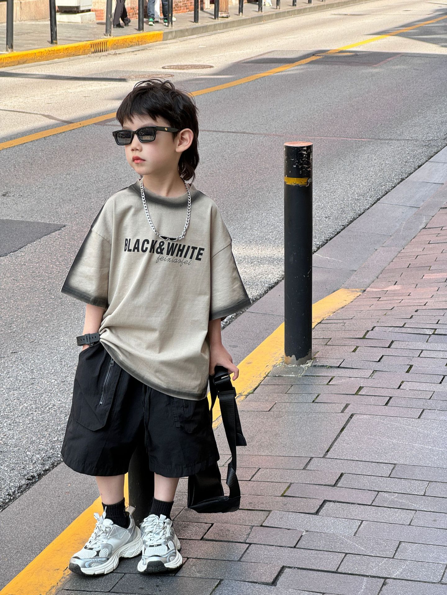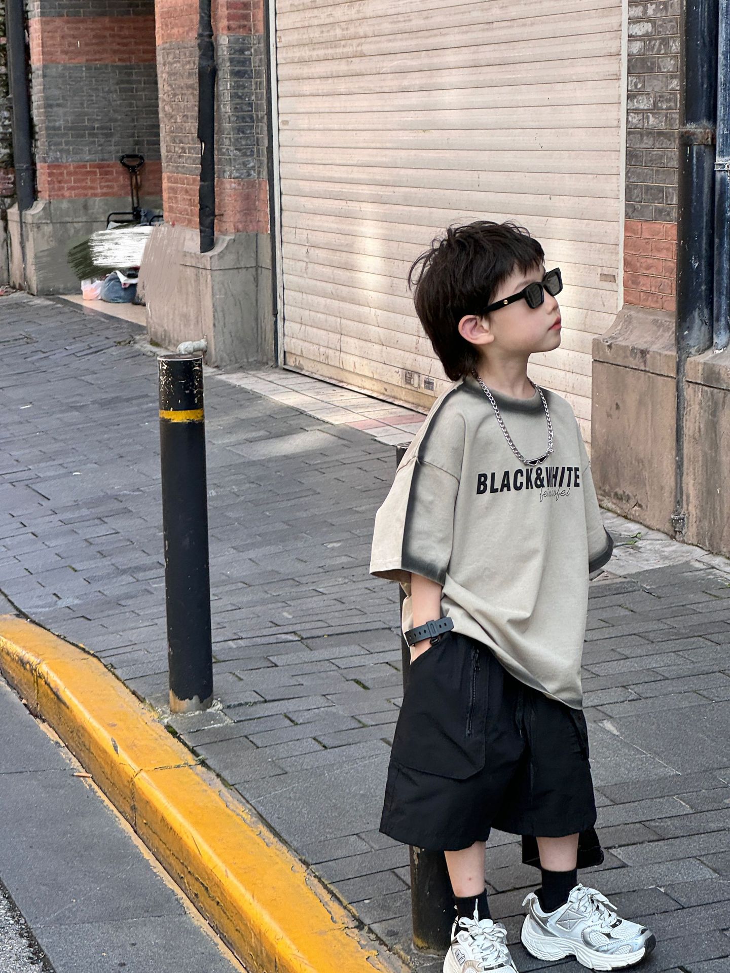 泰如夏季新款韩版男童时尚百搭拼色字母洋气T恤儿童短袖潮