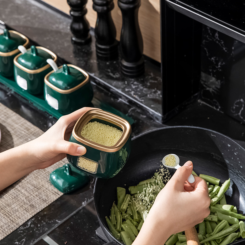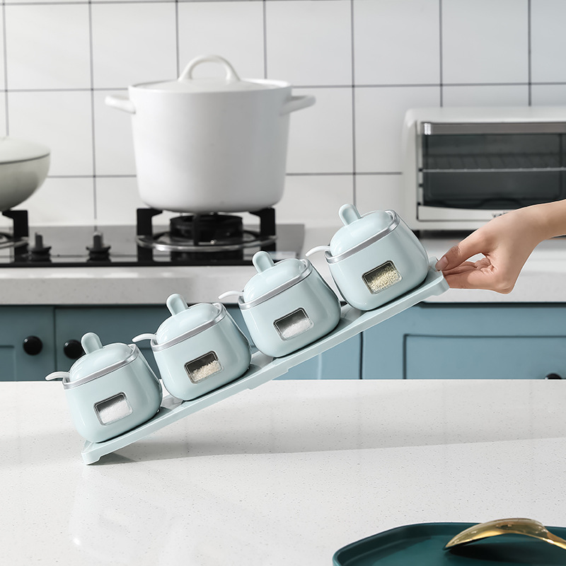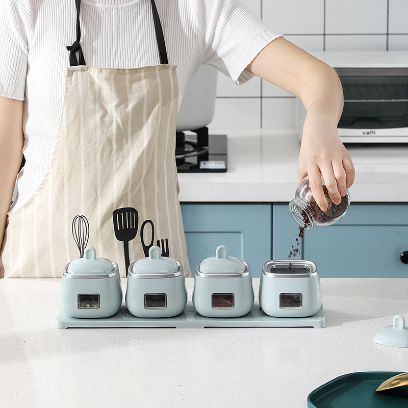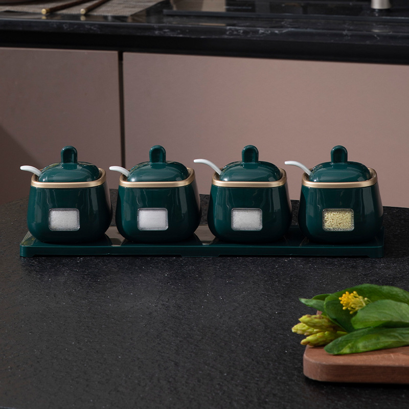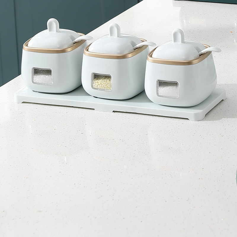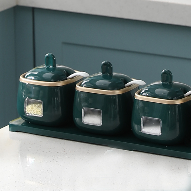 轻奢塑料调味盒窗口调料罐厨房调味罐3/4件套香料家用调料盒