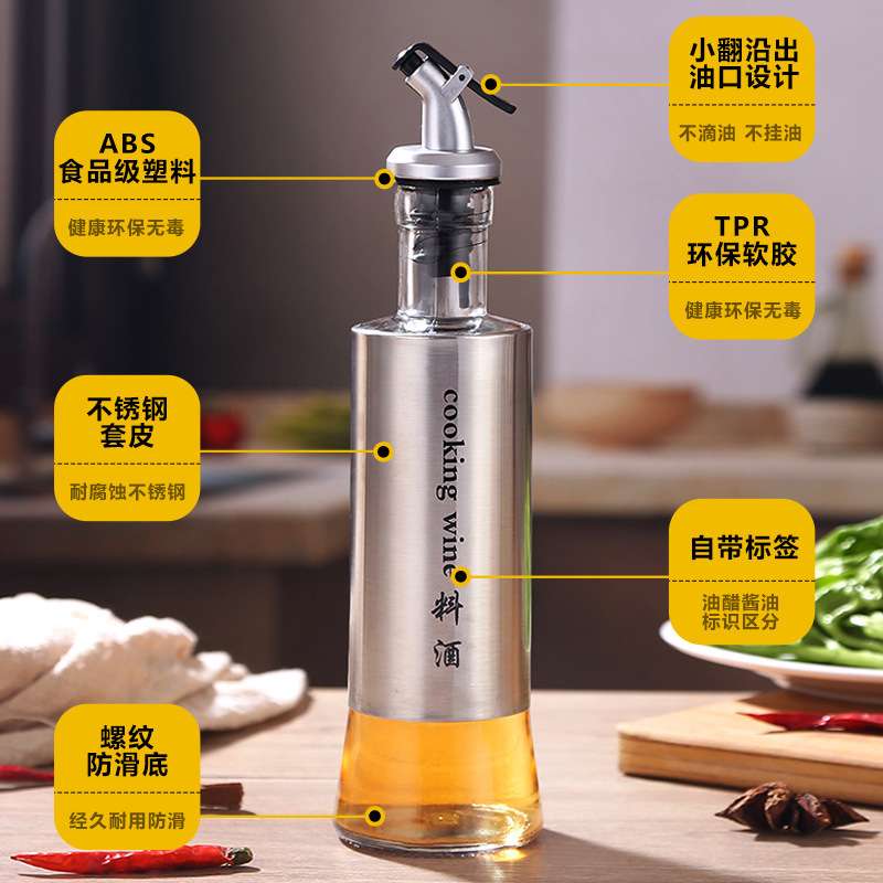 厨房调味瓶不锈钢油壶家用密封玻璃油瓶料酒酱油醋瓶调味组合