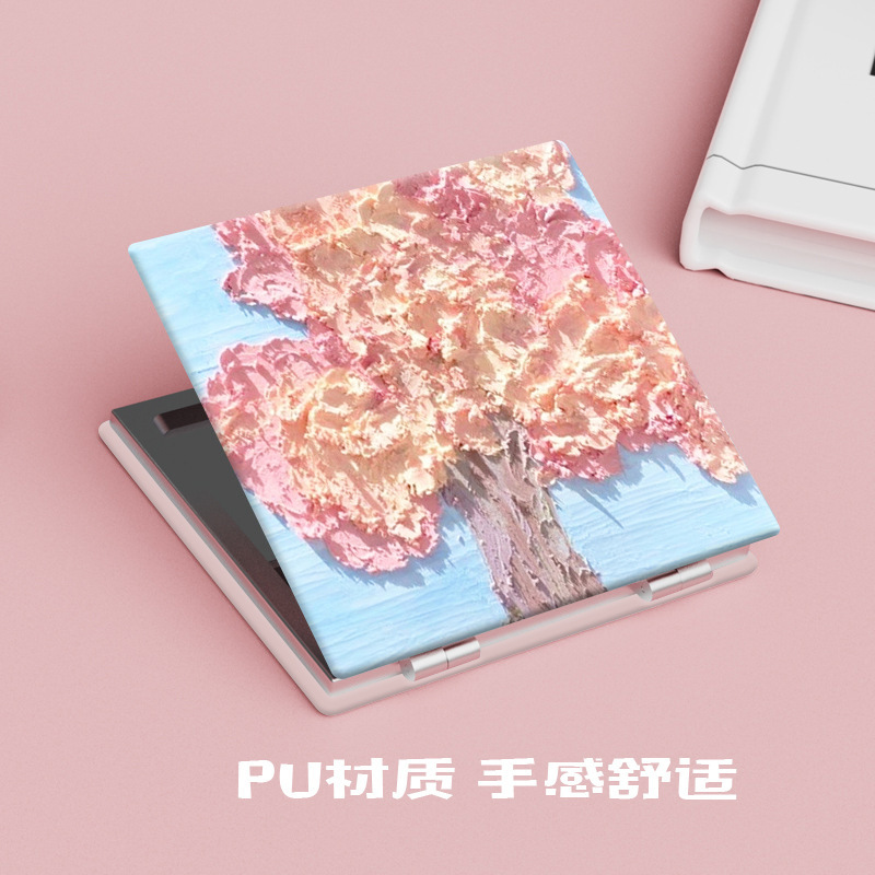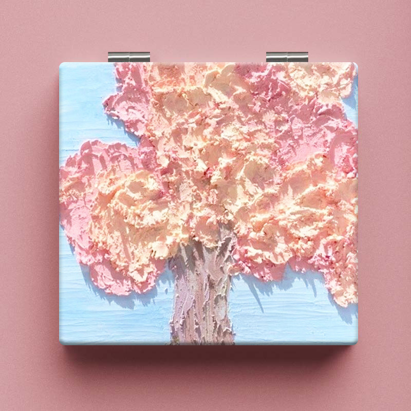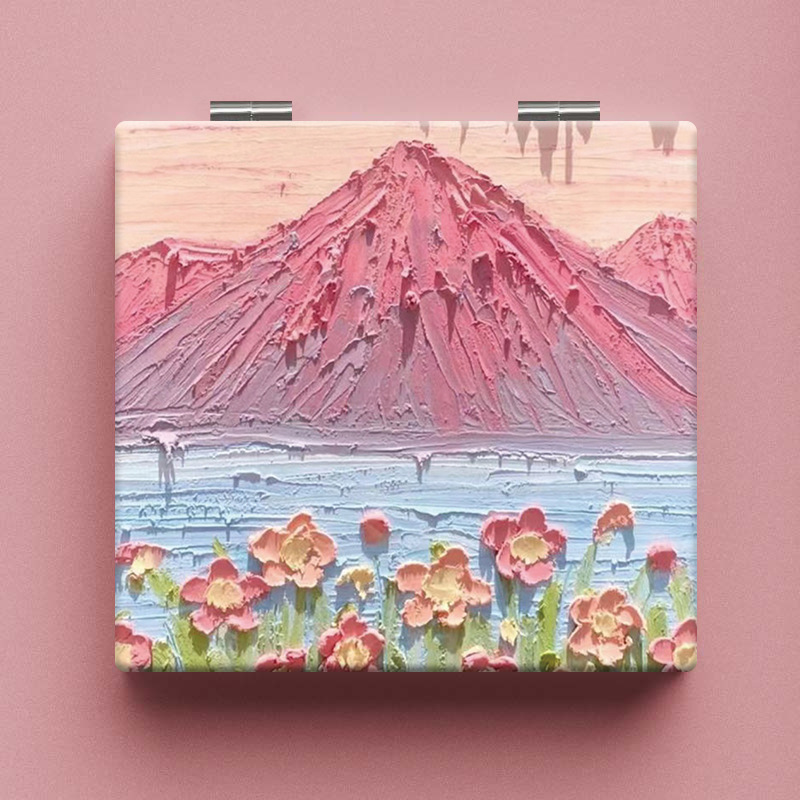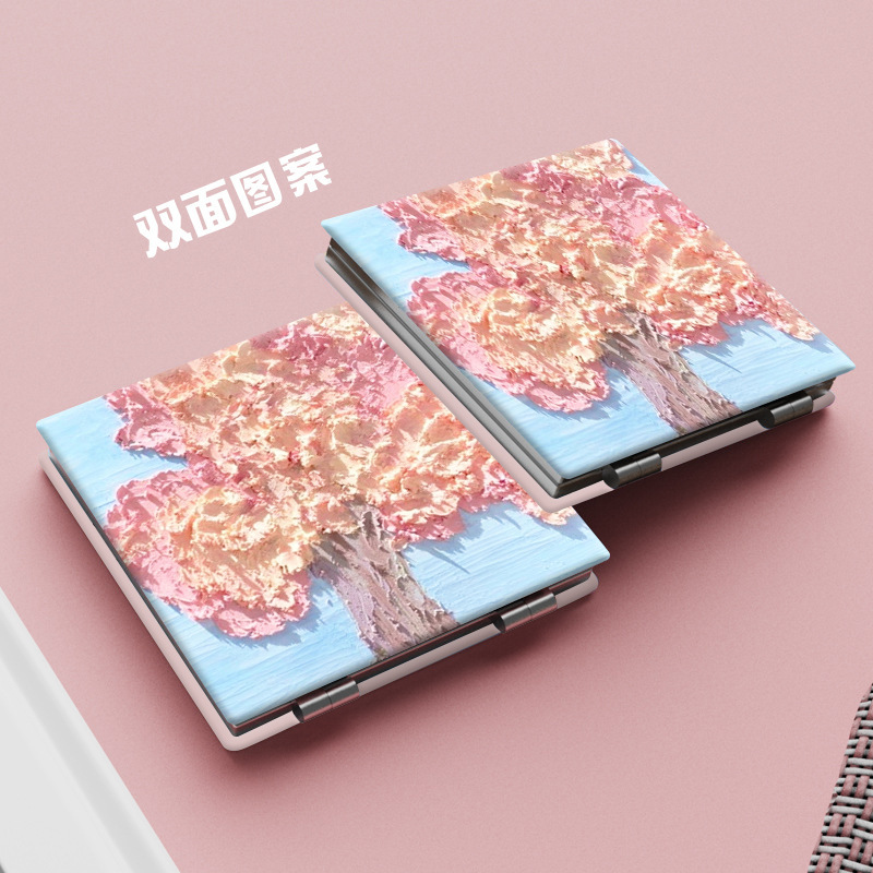 粉色花朵油画便携化妆镜子韩国随身学生折叠镜可爱小清新小镜子女