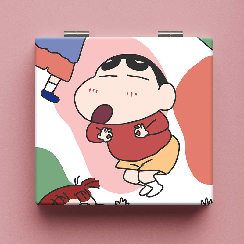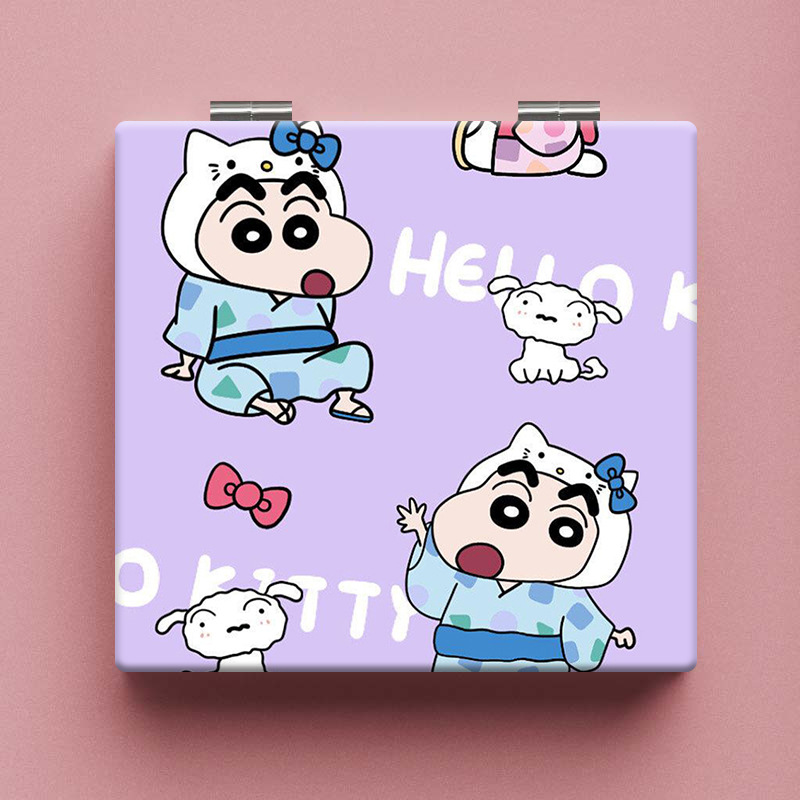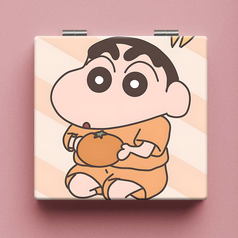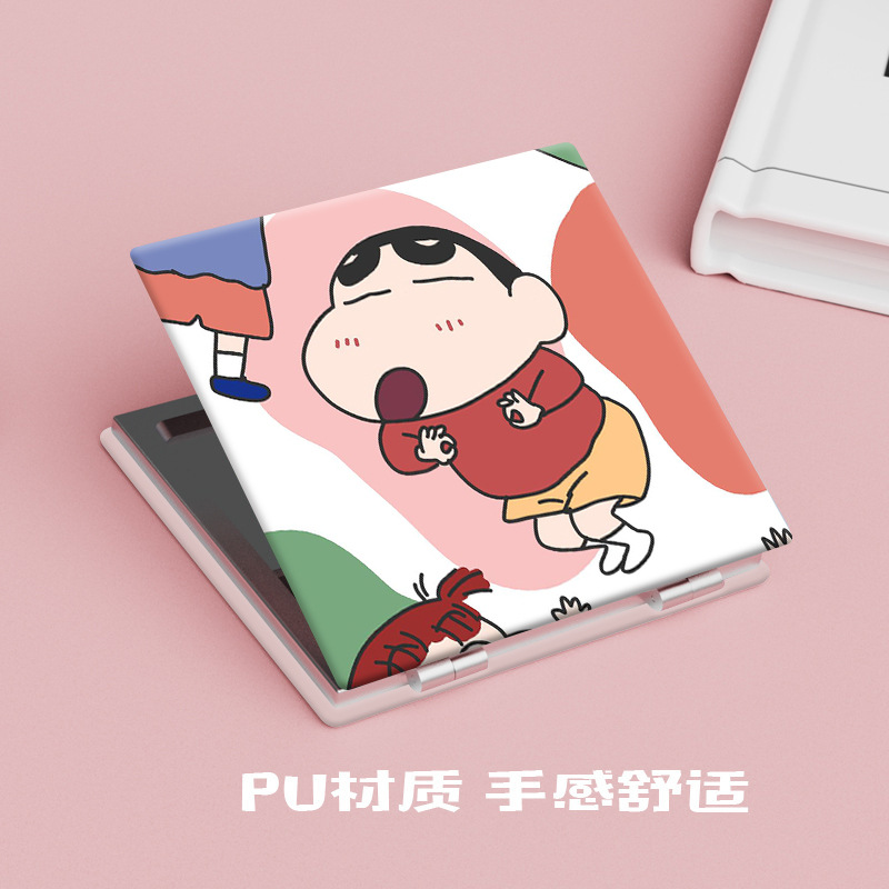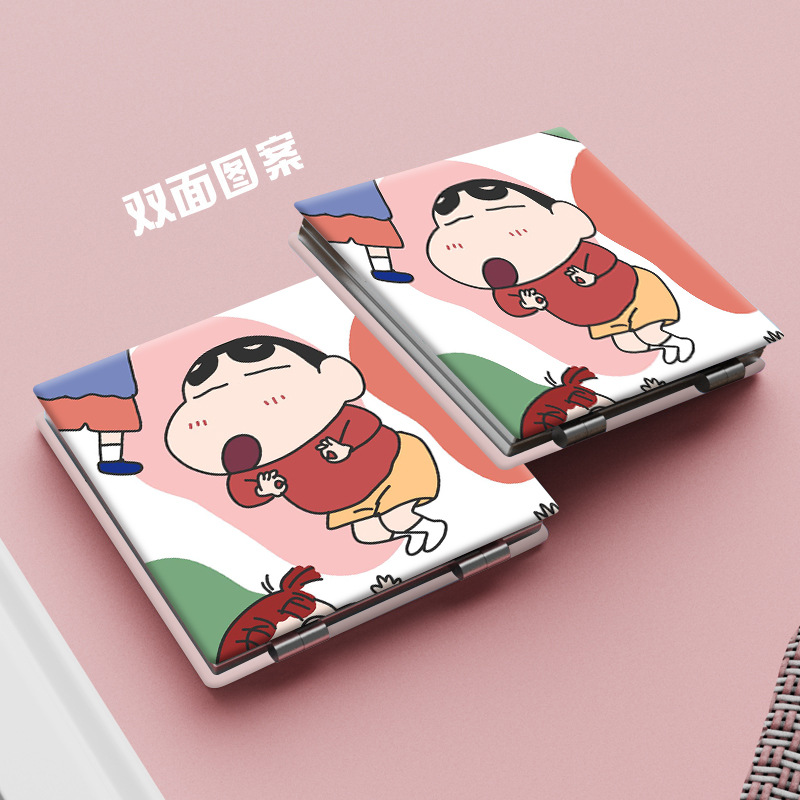 可爱蜡笔小新随身化妆镜学生便携折叠双面镜手拿方形放大翻盖镜子