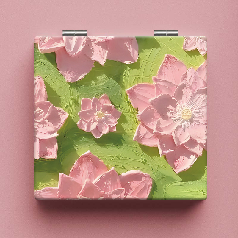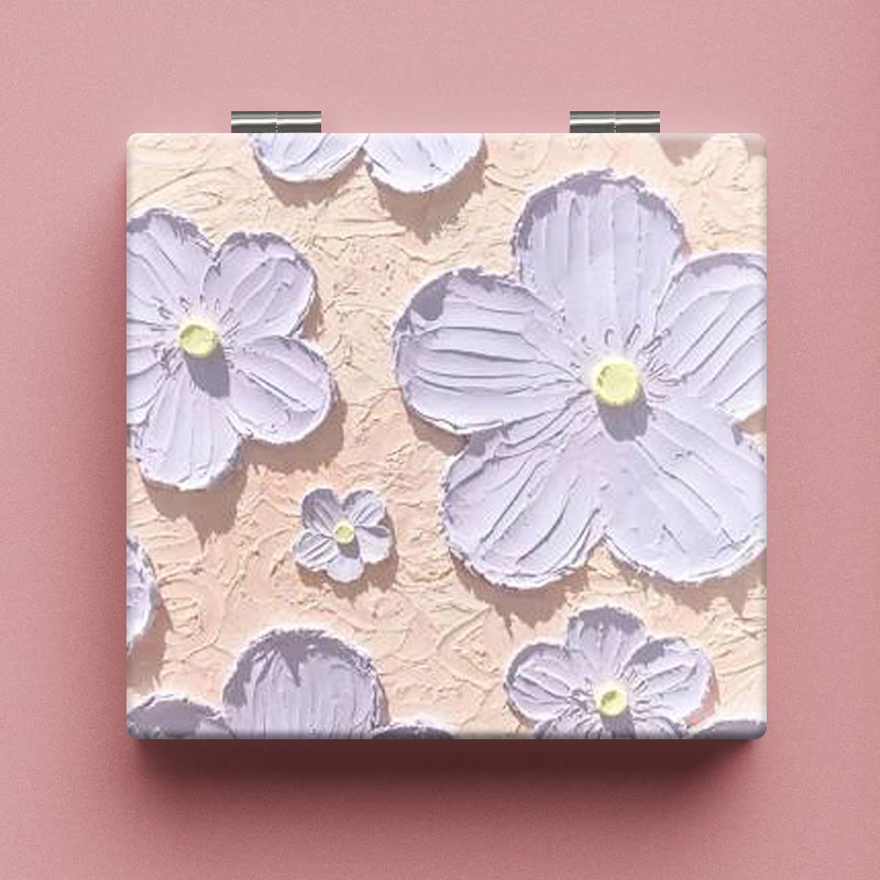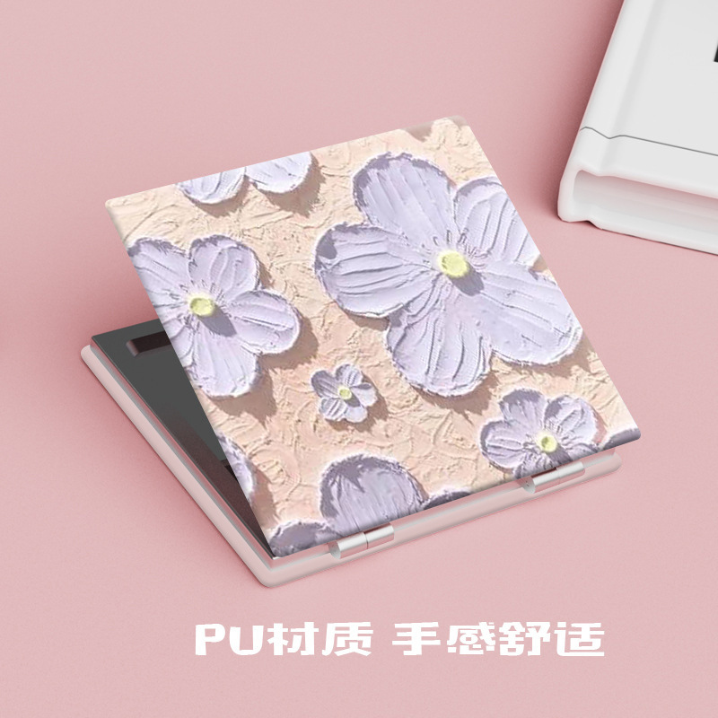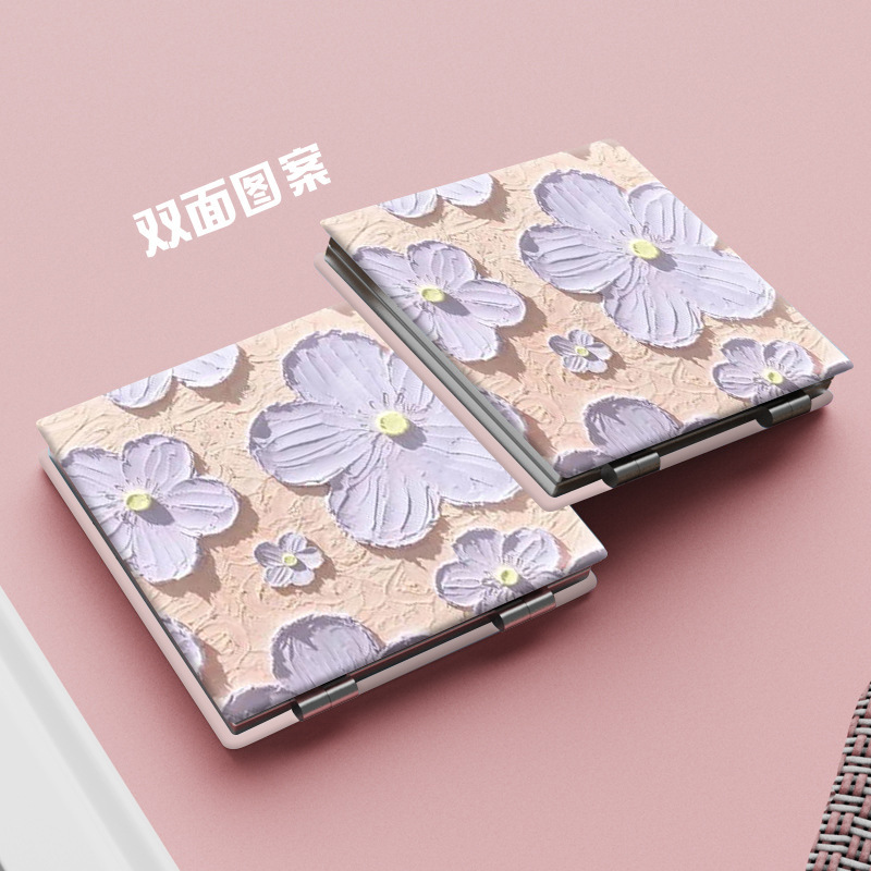 油画花朵饭收纳折叠镜子校园学生卡随身便携美颜手持课桌