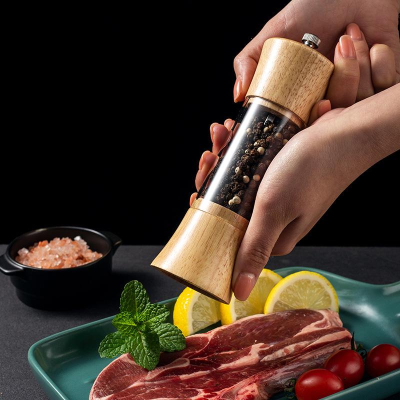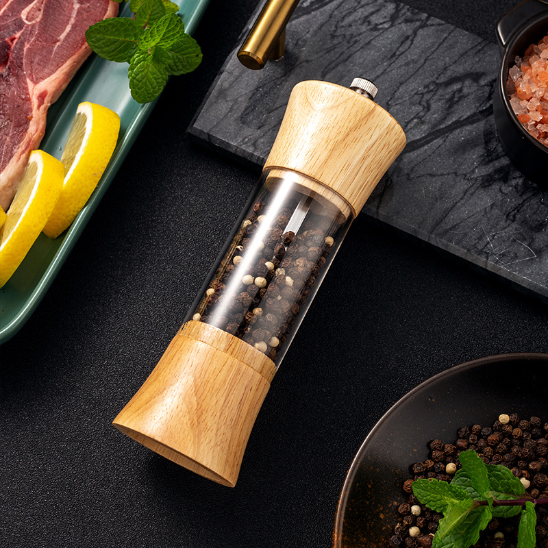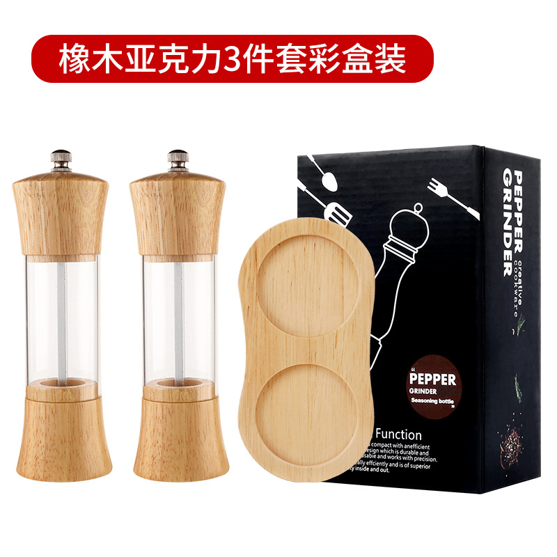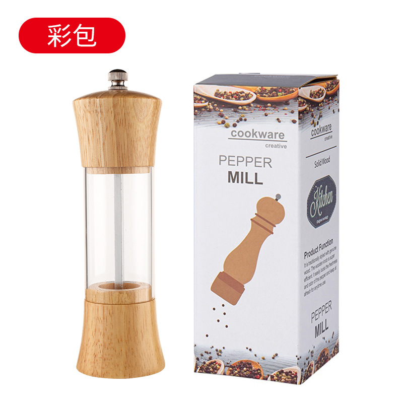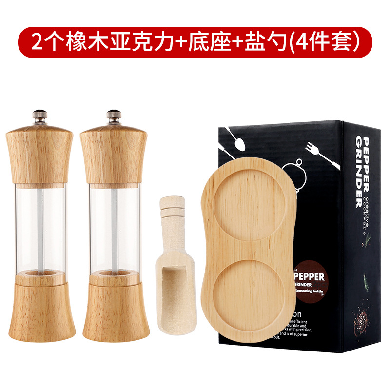 橡木亚克力透明6寸橡木胡椒磨花椒胡椒研磨器多用调味瓶厨房工具