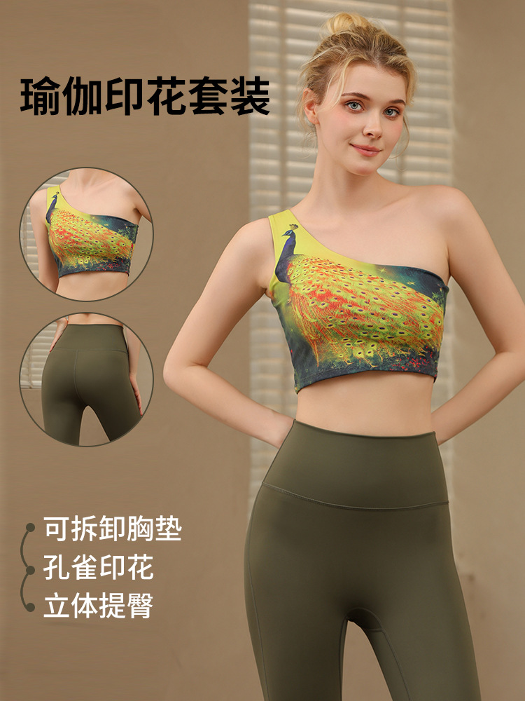 健身女孩性感斜肩运动内衣防震聚拢美背瑜伽普拉提训练背心套装新