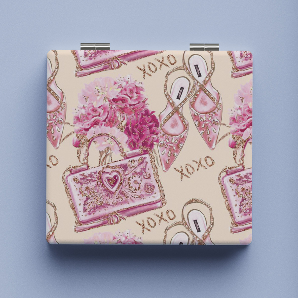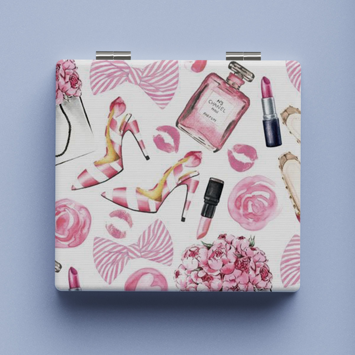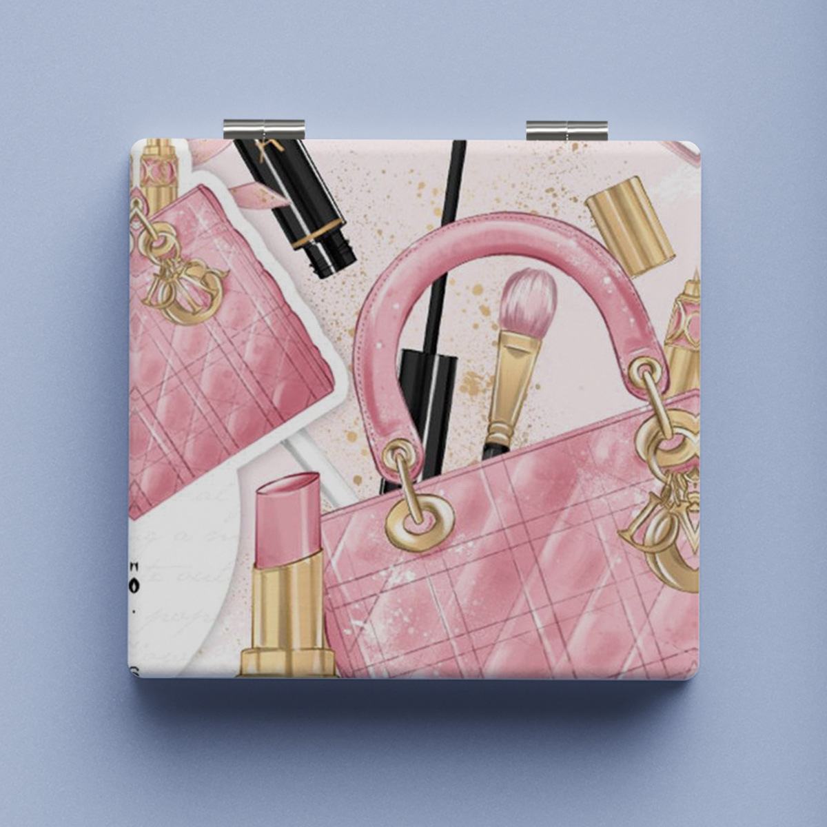 ins风化妆工具随身化妆镜便携式可折叠双面图案韩国小镜子补妆镜