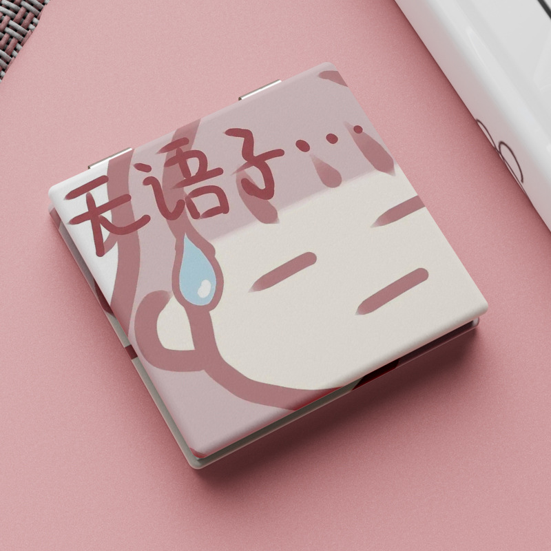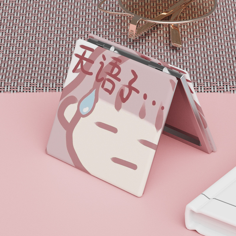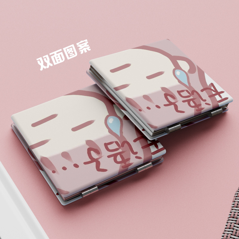 手绘创意个性随身镜折叠镜学生便携化妆镜迷你补妆镜宿舍双面镜女