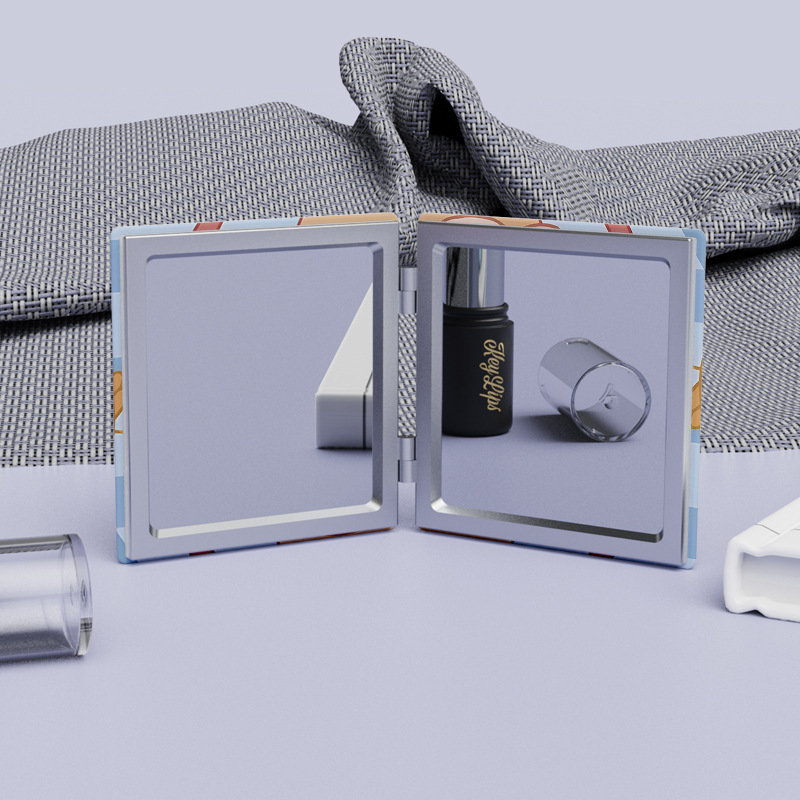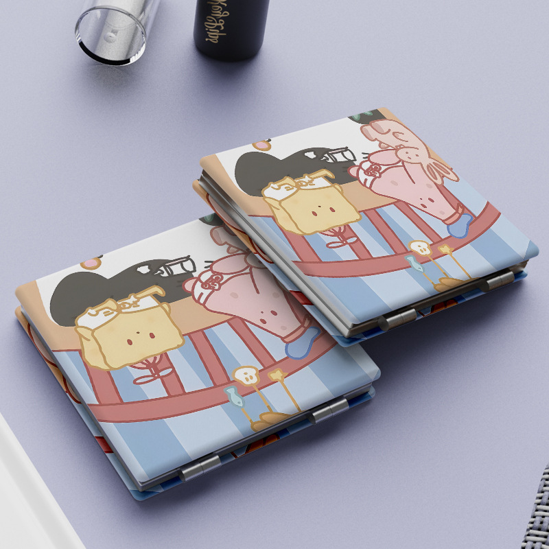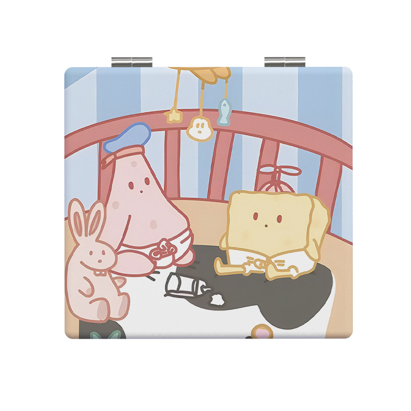 皮革化妆镜 简约时尚随身小镜子卡通可爱梳妆镜PU折叠镜
