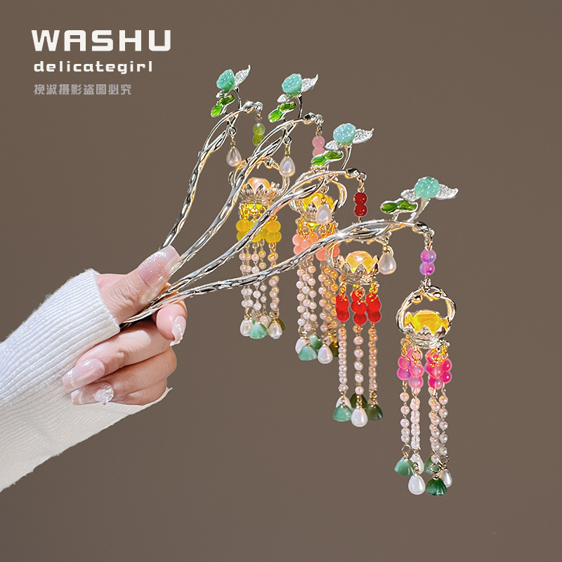 精致莲花会发光发簪古风灯笼西湖宫灯亭子发簪