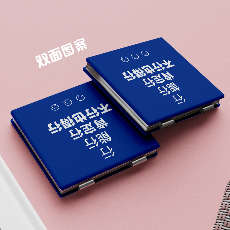 正方形PU皮ins风卡通随身双面折叠小镜子便捷化妆镜