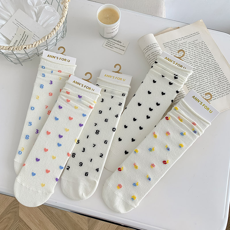 卷边袜子女韩系甜美小爱心少女堆堆袜春夏季薄款外穿ins风潮女袜