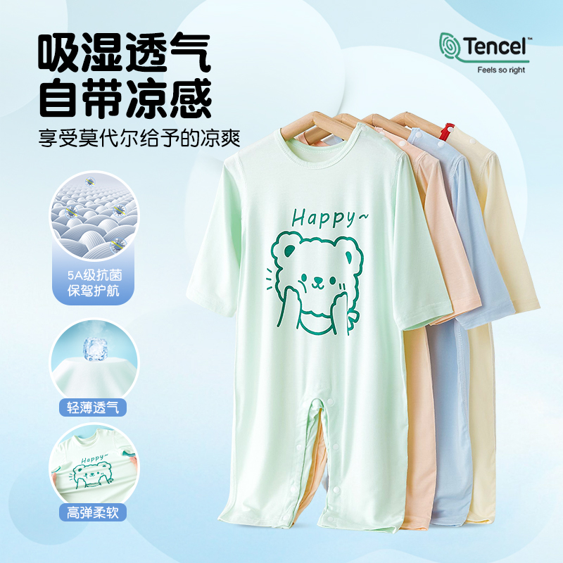 婴儿夏季连体衣莫代尔秋季新生婴儿宝宝衣服薄款睡衣长袖哈衣爬服