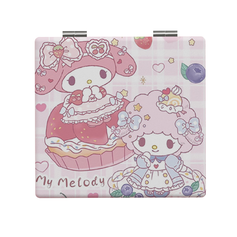 美乐蒂三丽鸥随身镜学生便携折叠皮面镜少女心闺蜜补妆镜手持镜子