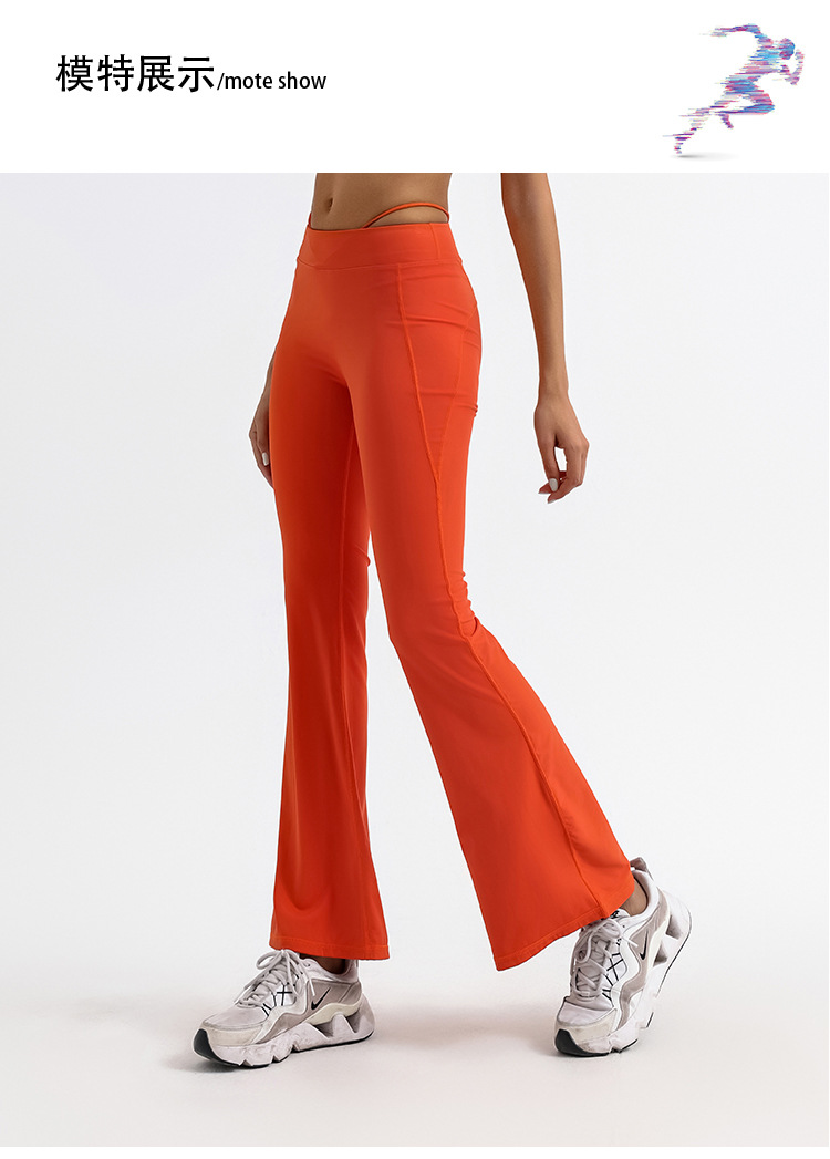 运动健身长裤女高腰细绳无尴尬线裸感速干瘦腿喇叭裤
