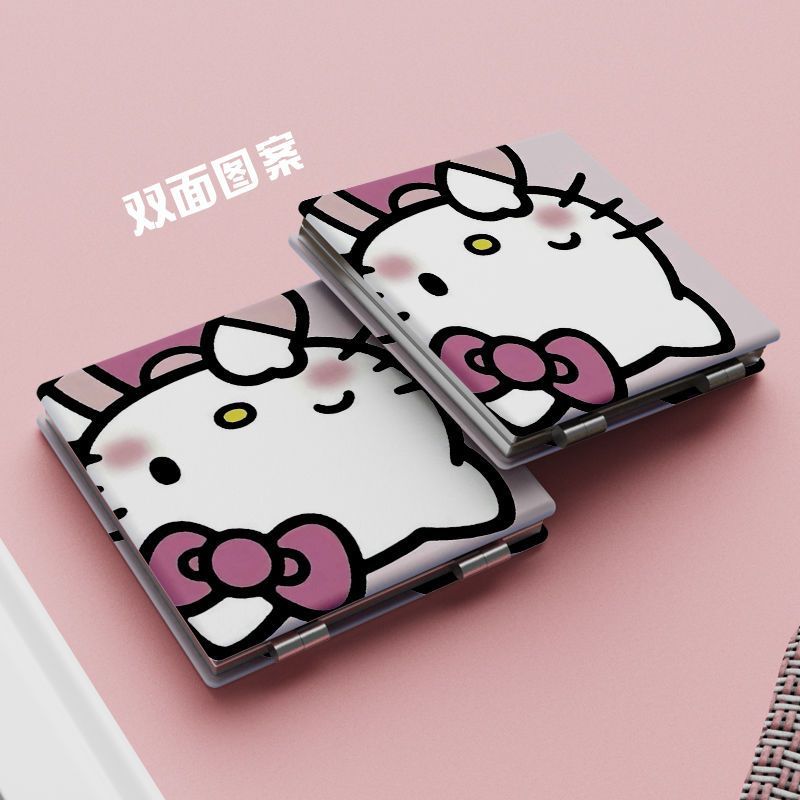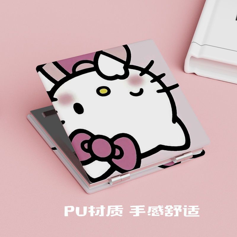 hellokitty小镜子双面折叠式随身携带补妆镜女皮面镜防摔