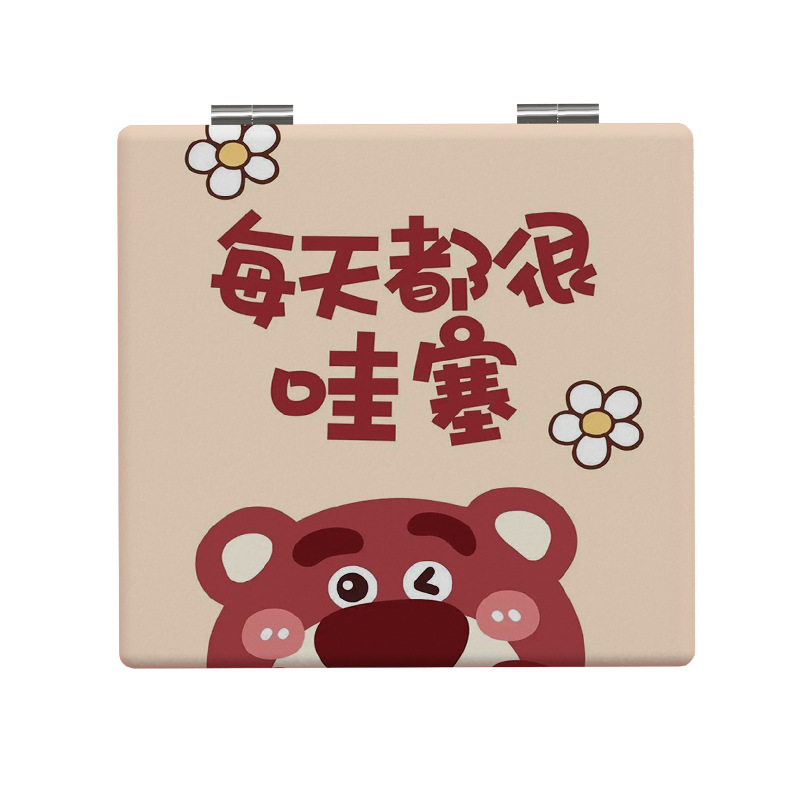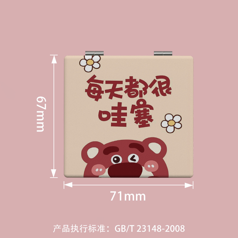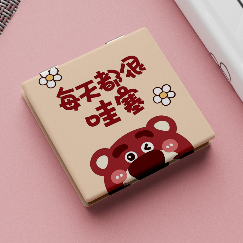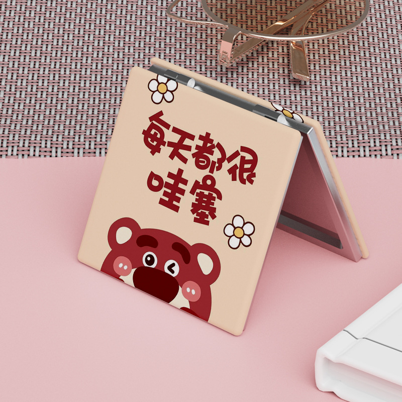 草莓熊学生手持化妆镜随身便携折叠双面迷你补妆小镜子翻盖式女