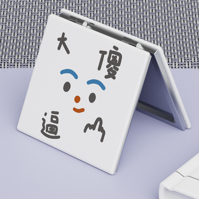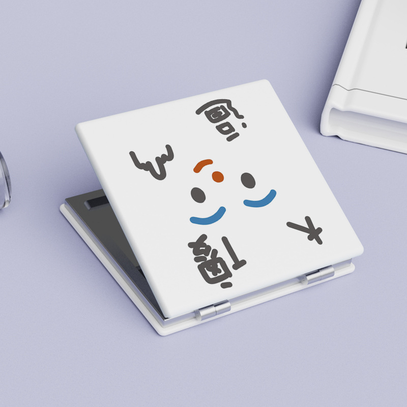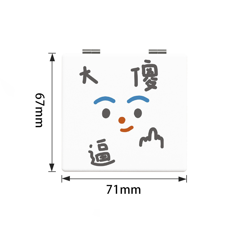 可爱卡通搞笑表情化妆镜迷你便携式方形少女风双面镜PU皮美妆镜