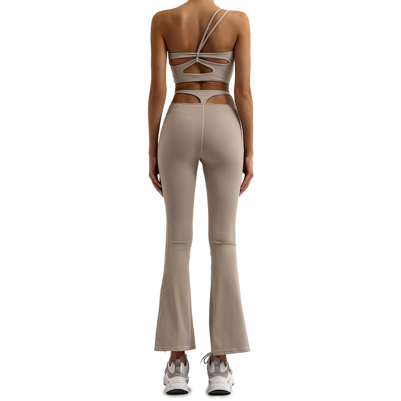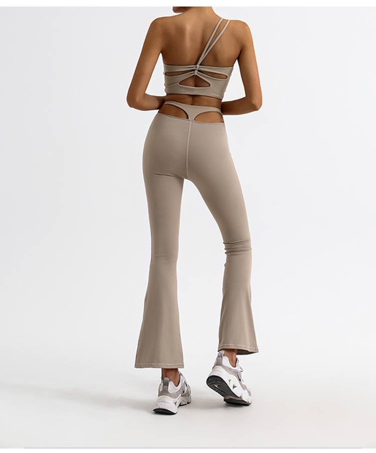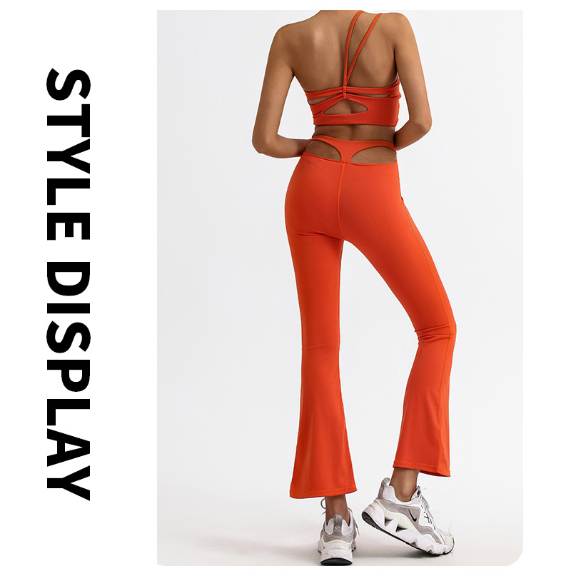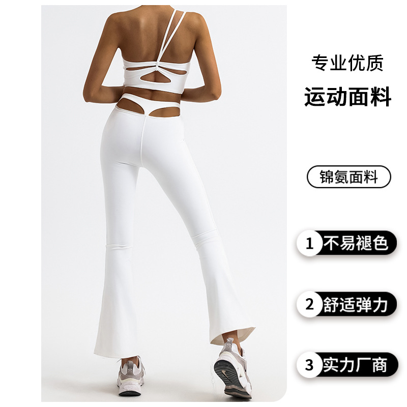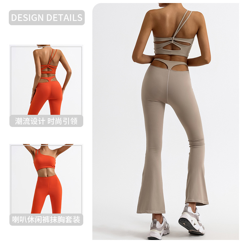 瑜伽套装含胸垫美背吊带背心高腰镂空运动健身喇叭裤