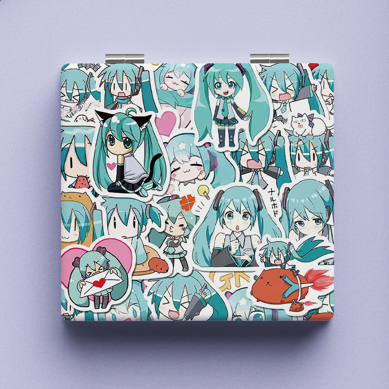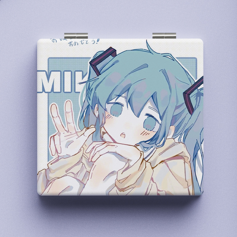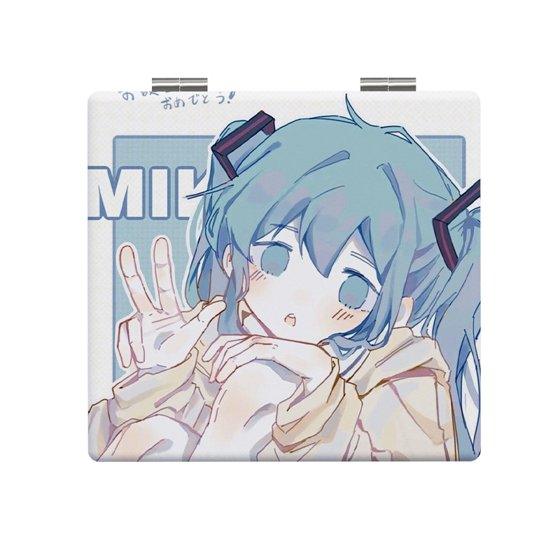 初音未来镜子批发折叠迷你小镜子卡通皮革pu随身化妆镜便携双面镜