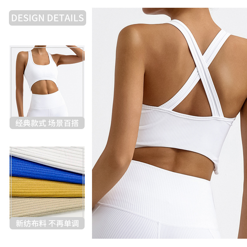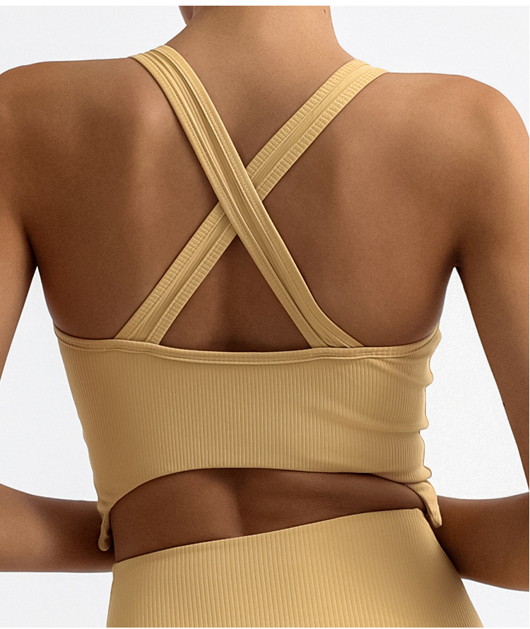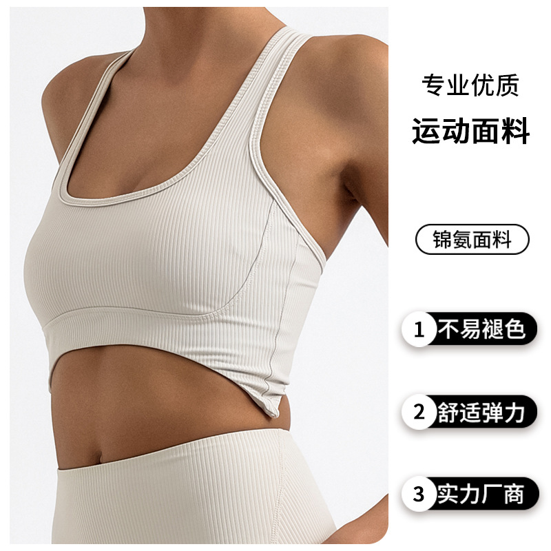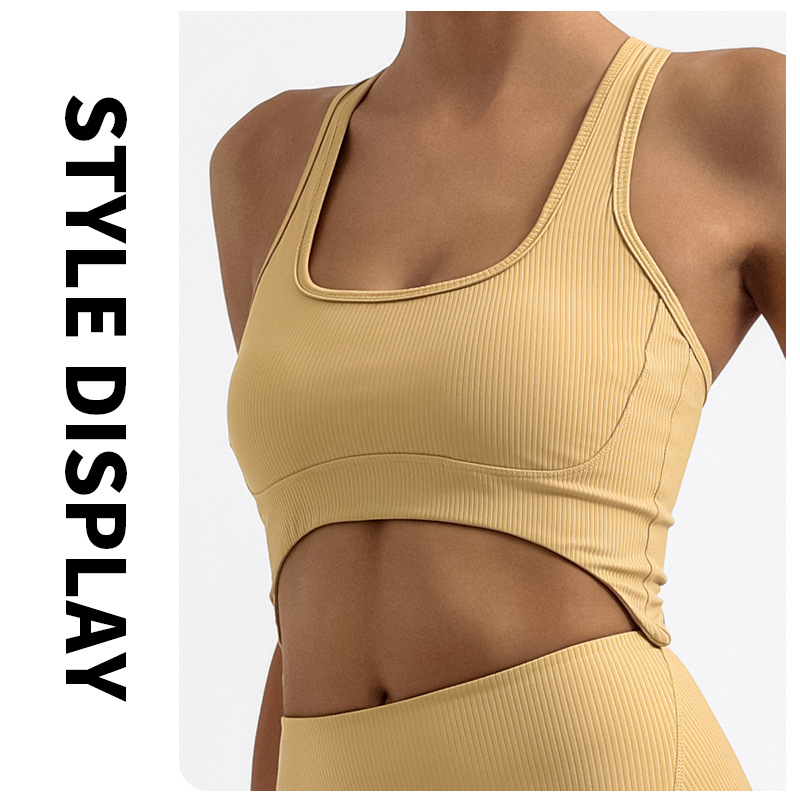瑜伽背心女 条纹含胸垫防震美背不规则运动健身吊带bra